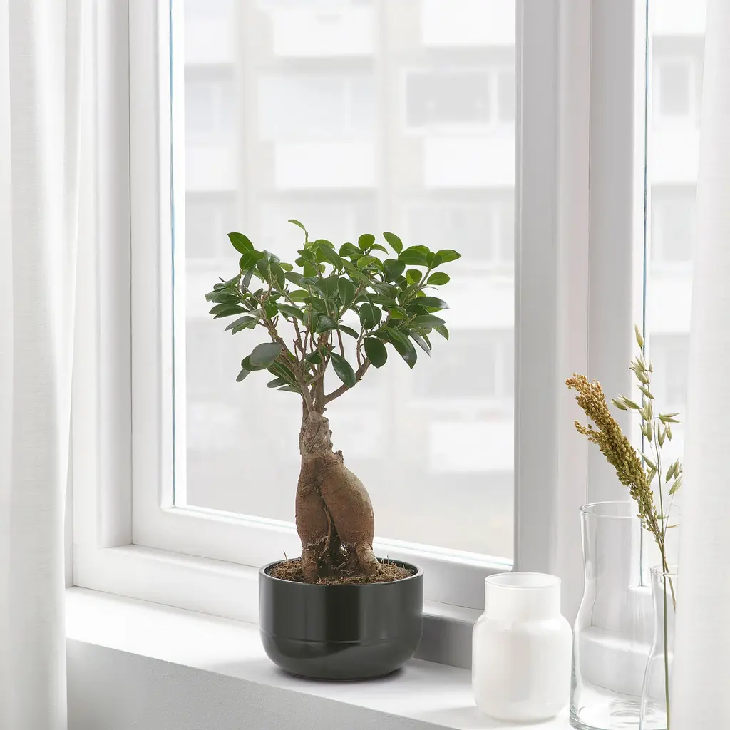 FICUS Plant with pot - bonsai/assorted colors 5 ½ ". This plant is hardy and easy-care, so you can create a green home without being a gardening expert. A plant pot is included with the plant. The plant pot has a clean and modern design that goes well with many interior styles. Slow growing.