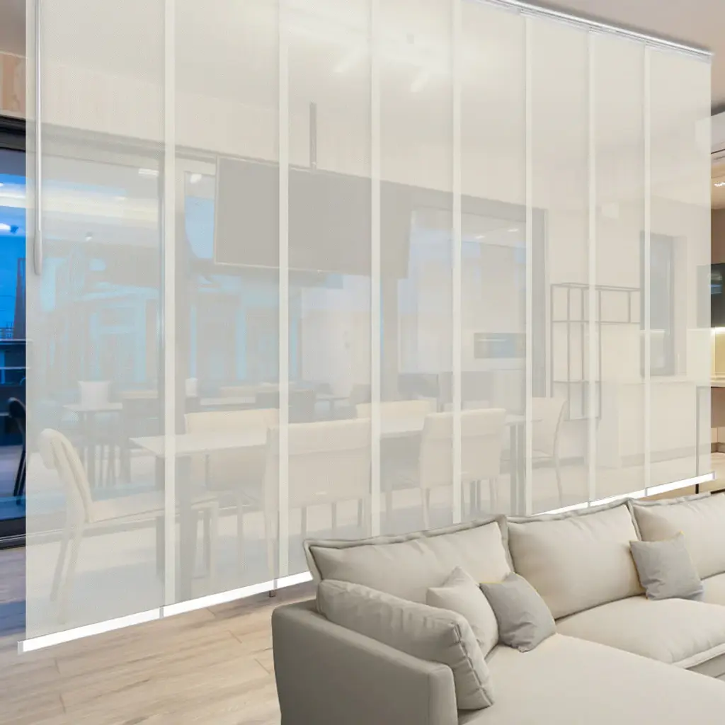 Central Design Products is pleased to introduce a new innovative panel track that offers easy 2-way installation, adding an alluring style and refined touch to your home decor. The double rail design of the track is sleek, compact, and reduces the overall footprint and weight of the installation, eliminating bulky, intrusive window treatments. Adjusting the panel height is a breeze � simply trim the panel, re-attach the liner, and install the panel weight. Detailed instructions are included.The panel track also features a patented slider design, made with aluminum and fitted with bearings that allow for durable and smooth operation. The sliders are stacked closer together than conventional panel tracks, reducing light bleed coming from the gaps between panels. This track has endless uses from dividing rooms, garages, offices, and closets to decorating windows and patios. Available in smaller sizes including 3, 4, 5, 6, and 7 panels. Extends from 130-175� wide. Each panel measures 23.5" wide and 116" tall, with a total installation height of 118.5" (includes the 2.5" rail track). The track can be wall or ceiling mounted. The panels can stack on the left or the right. The clearance from the wall is extendable from 1.25� to 3.25� and projection from the wall is extendable from 3� to 4.25�. Fidel panel is made from 75% Vinyl 25% Polyester, with a light filtering shade that blocks 40% of the light.