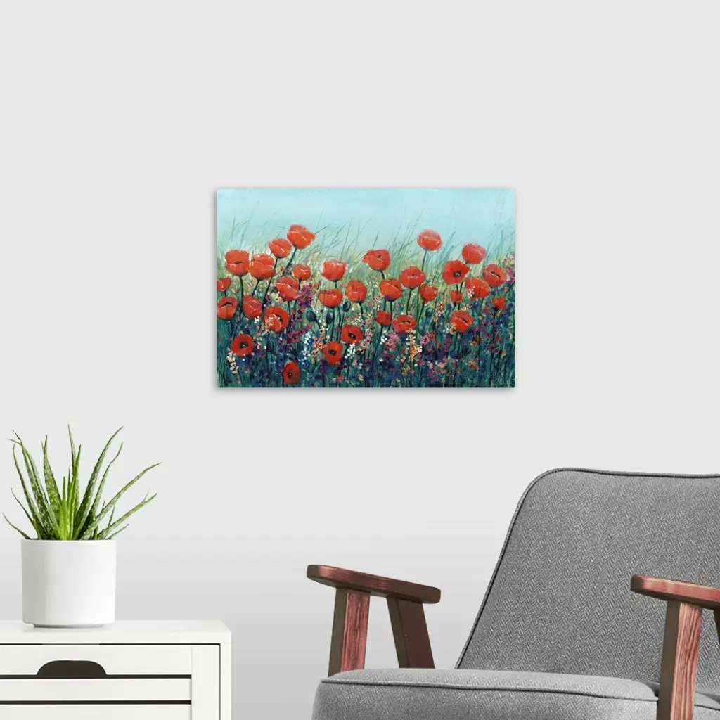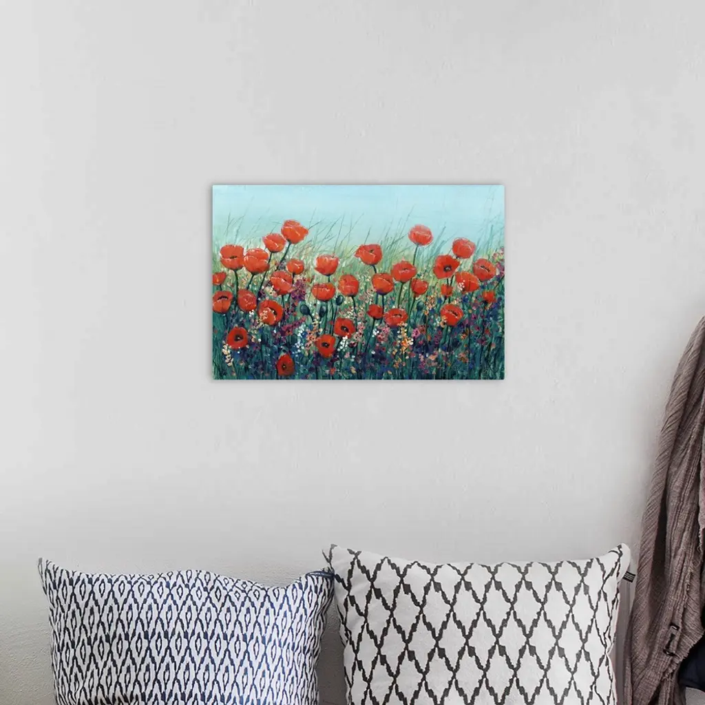 Field Of Red Poppies II wall art for home and office decor. Discover canvas art prints, photos, mural, big canvas art and framed wall art in GreatBigCanvas.com's varied collections.