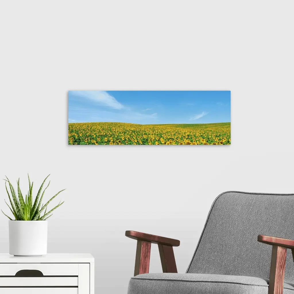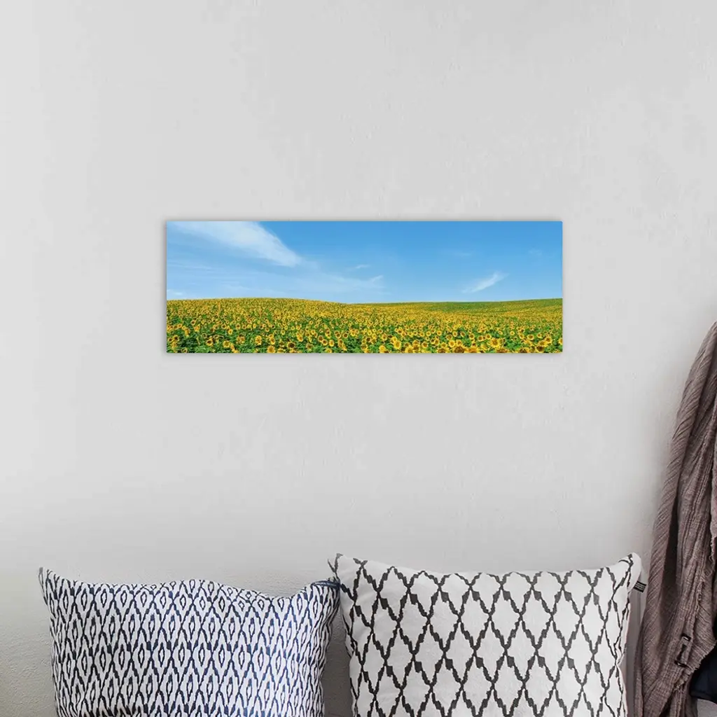 Field of sunflower with blue sky wall art for home and office decor. Discover canvas art prints, photos, mural, big canvas art and framed wall art in GreatBigCanvas.com's varied collections.