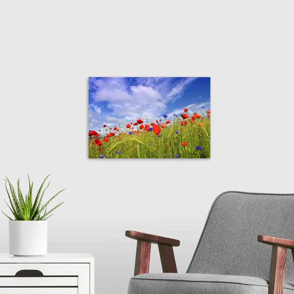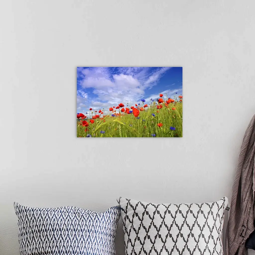 Field With Flowering Red Poppies (Papaver Rhoeas)