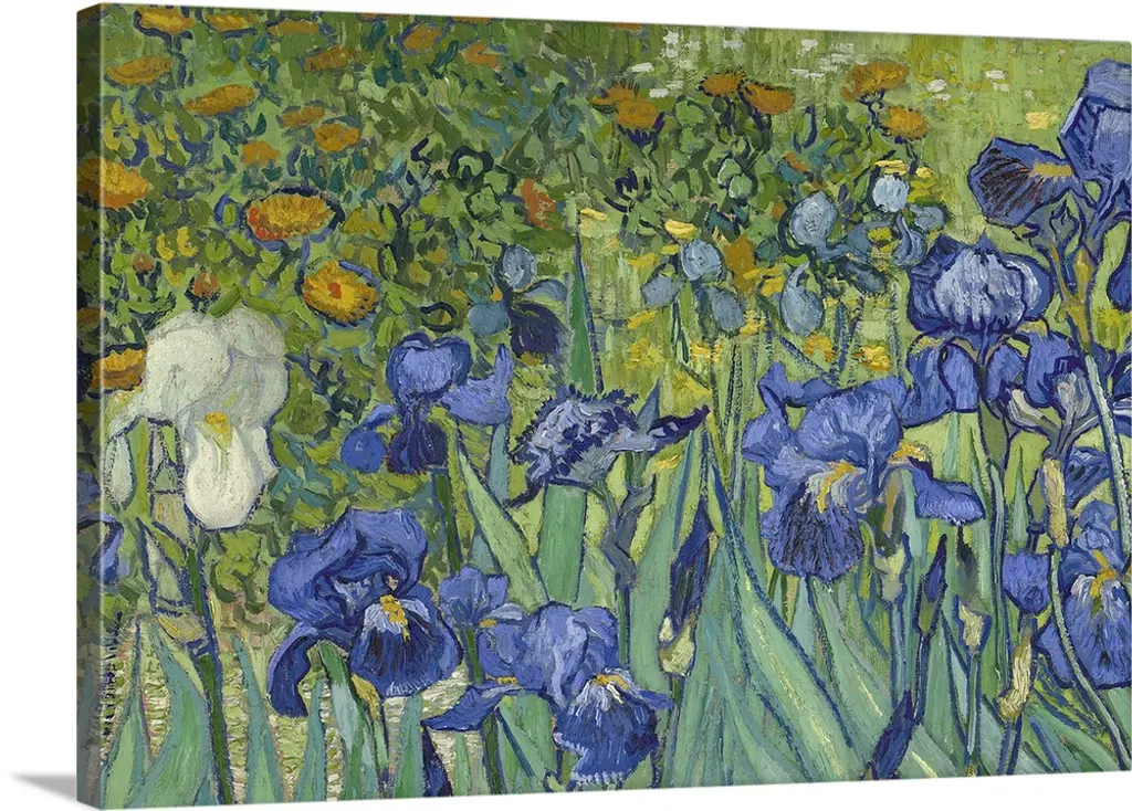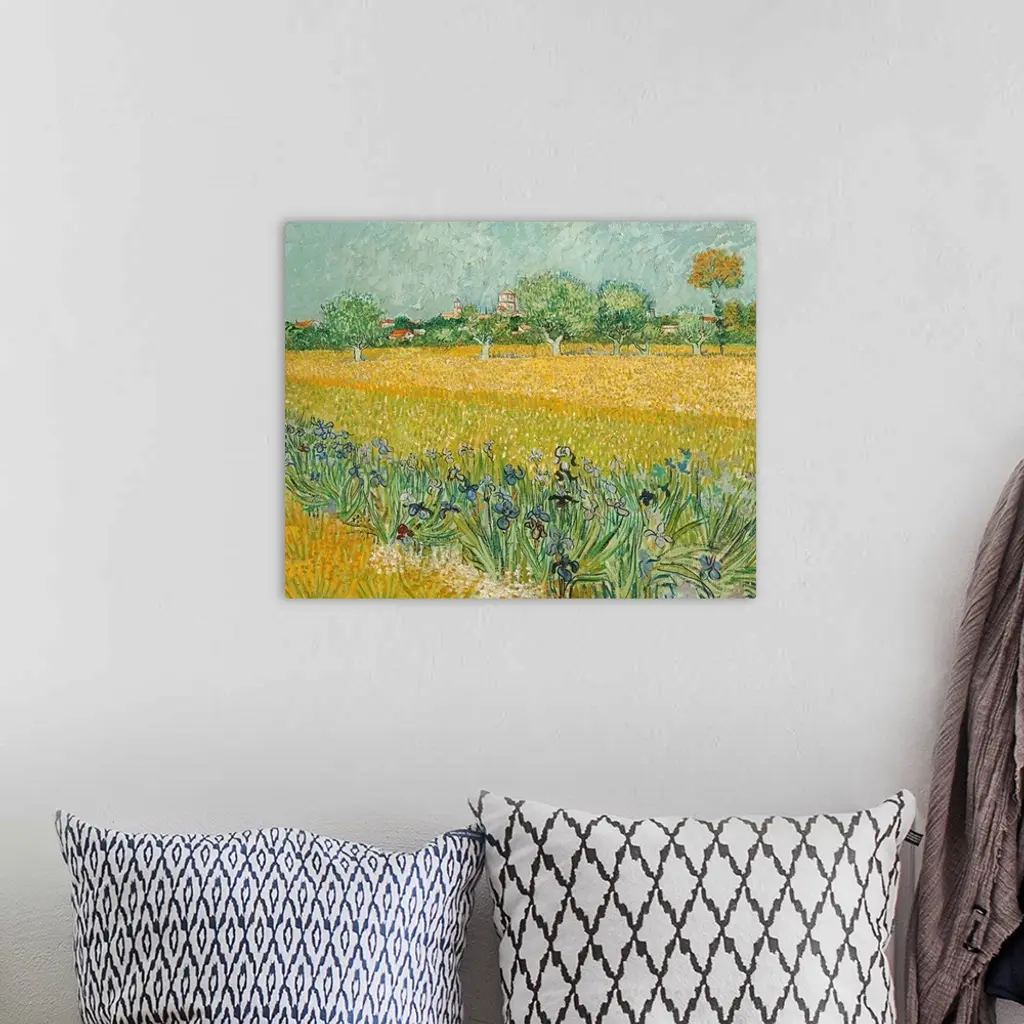 Vincent van Gogh (Dutch, 1853-1890), Field with Irises near Arles, 1888. Oil on canvas, 65 x 54 cm (25.6 x 21.3 in). Van Gogh Museum, Amsterdam, Netherlands. | Location: near Arles, France.