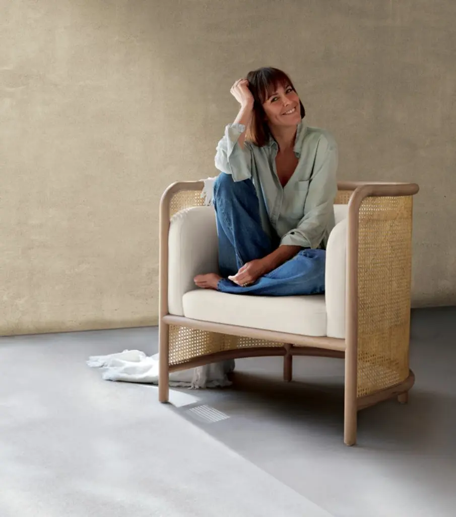 Classic bentwood and retro caning shape the breezy curves of Fields, a contemporary take on the traditional barrel chair. Solid oak flows the seamless design, integrating back, armrest and leg into one fluid silhouette. Upholstered in white to complement the blond wood, the tight back and cushion seat snuggle in for a comfy yet upright sit. We love the unique texture and subtle color variations of the yarn-dyed fabric made of 100% cotton with soft calendar finishing.Curated and crafted around the world, our first furniture and decor collaboration with design star Leanne Ford brings her cool, effortless vibe home to you.