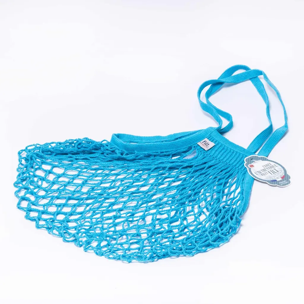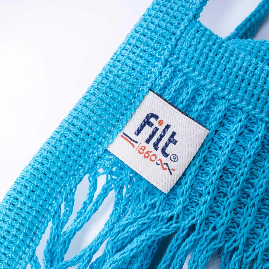 Filt - French Sky Blue Net Cotton Carry Bag. The original and surviving producer of net bags. Filt have produced net bags in Normandy since 1860. The typical bags used by generations of busy households for market and grocery shopping, very strong and practical. Available in a variety of colours.Workshop Report:Contemporary product woven in France.Date:21st CenturyMaker:Industrial Production – FranceDimensions:1cm(w) x 36cm(l) x 38cm(h)