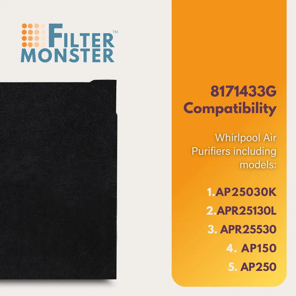 Filter-Monster Replacement Compatible With Whirlpool 8171433k Pre-Filter For Whirlpool Air Purifier Models 4 Pack - Black - Synthetic Fiber