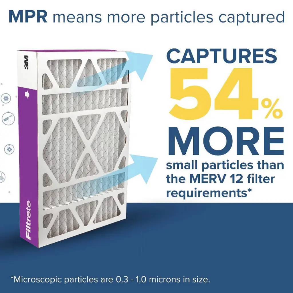 Filtrete™ 20x25x4 MPR 1550 Air Filter, made by 3M, helps capture unwanted particles from your household air to contribute to a cleaner, fresher home environment. Designed with exclusive Filtrete™ 3-in-1 technology, including a high MPR 1550 and MERV 12 rating, your AC filter will help pull and capture countless microparticles – such as pet dander, smoke, bacteria and up to 55% of virus airborne particles (1) – while letting cleaner air flow through. Your Filtrete™ Filter will also capture large particles, including lint, pollen and household dust. Use a 12-month pleated 4-inch home HVAC filter in your furnace, air conditioner or HVAC system. For optimal performance of your heating and cooling system or HVAC system, change your furnace filter at least every 365 days. Note: For easy replacement reminders, create a change countdown in the Filtrete™ Smart App. Simply use the app to scan the barcode on your filter’s packaging, then choose 90, 180 or 365 days for your replacement countdown. When the filter’s life is up, you’ll get a notification to change your filter. The No. 1 Recommended HVAC Air Filter Brand (2), Filtrete’s™ Home Air Filters provide the breakthrough technology needed to change how we clean our air, by filtering out particles both large and invisible, to create a cleaner, healthier home for ourselves and our families.(1) Based on airborne MS2 virus testing. Initial efficiency.(2) Based on the 2022 Ipsos US Brand Health Study of Residential HVAC Air Filters.