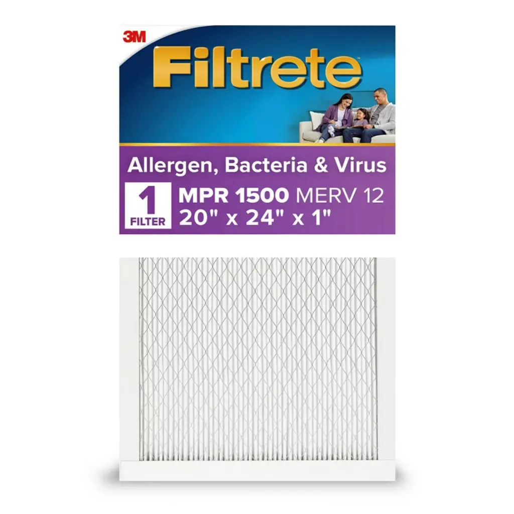 Filtrete 20x24x1 Allergen Bacteria And Virus Air Filter 1500 Mpr: Electrostatic Furnace Filter, Merv 12, Captures Dust & Smoke