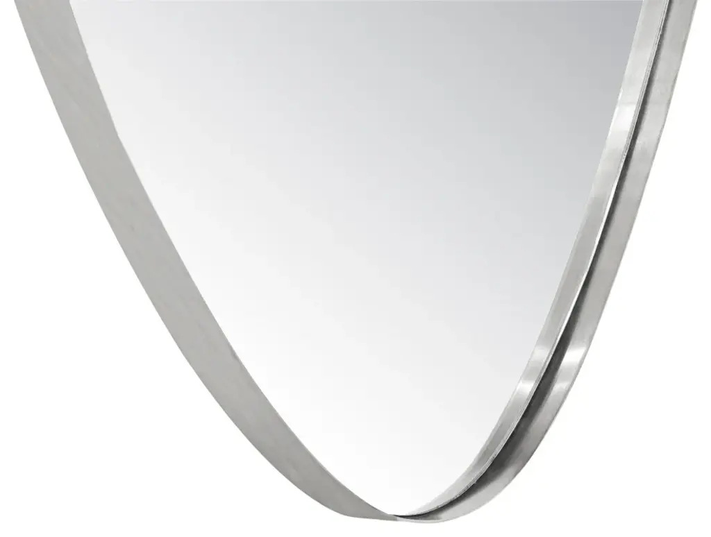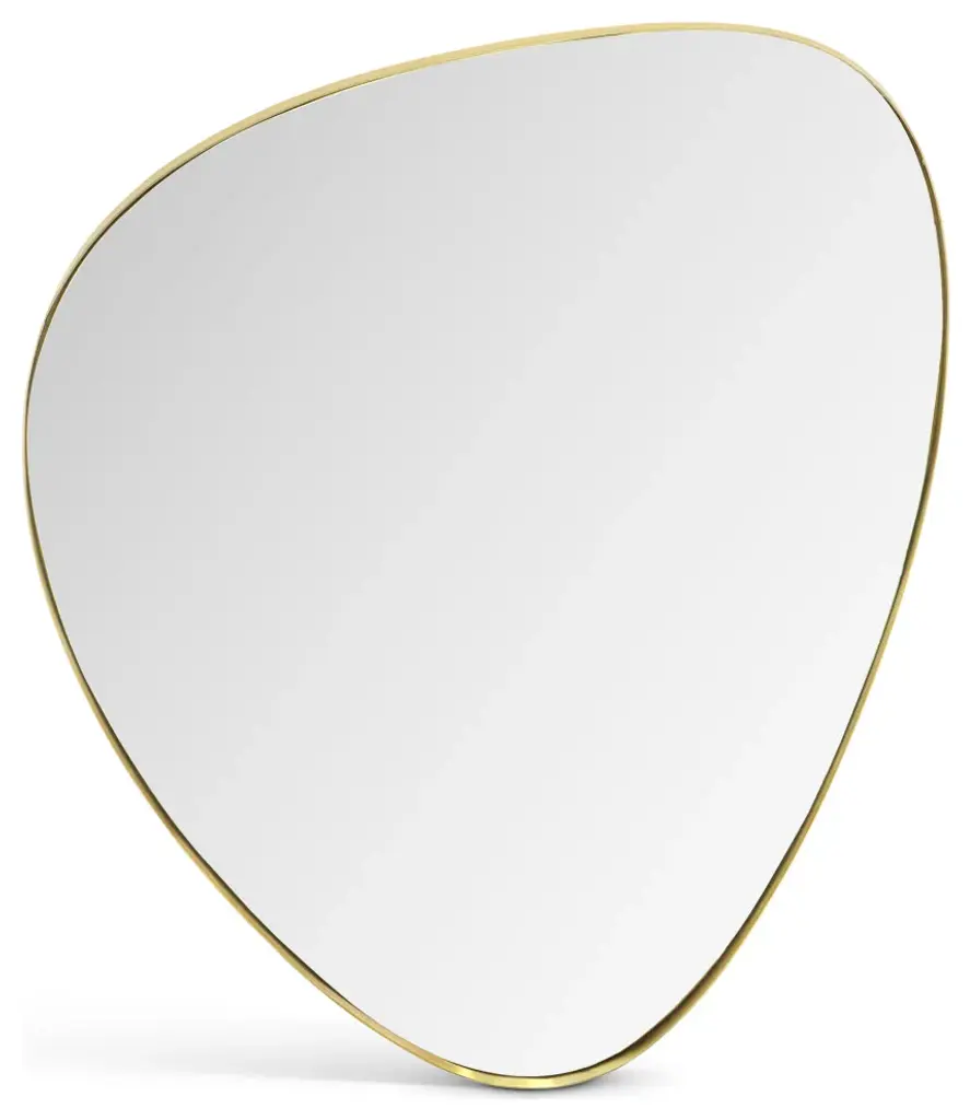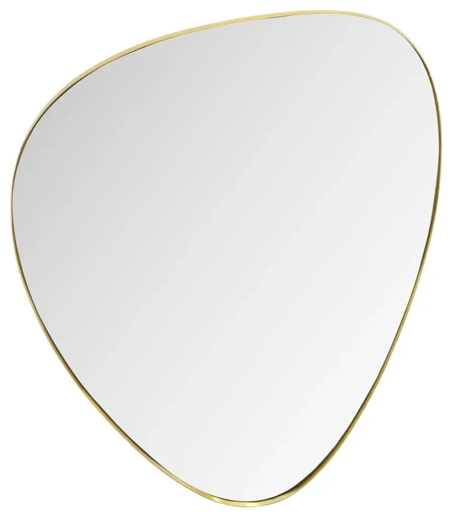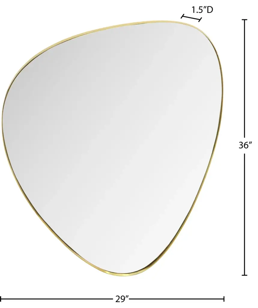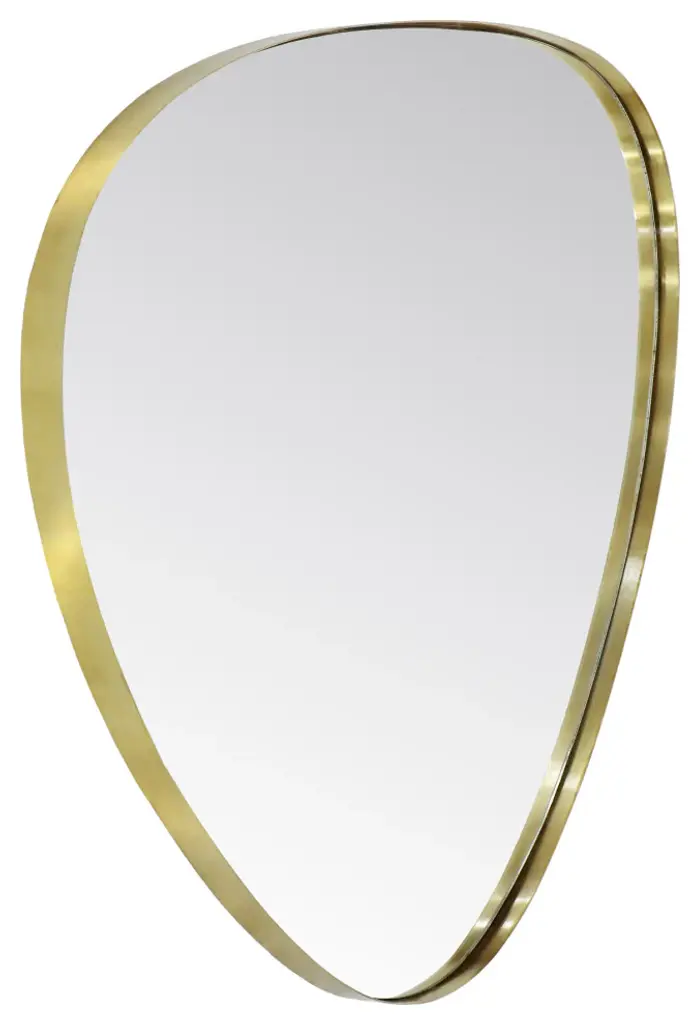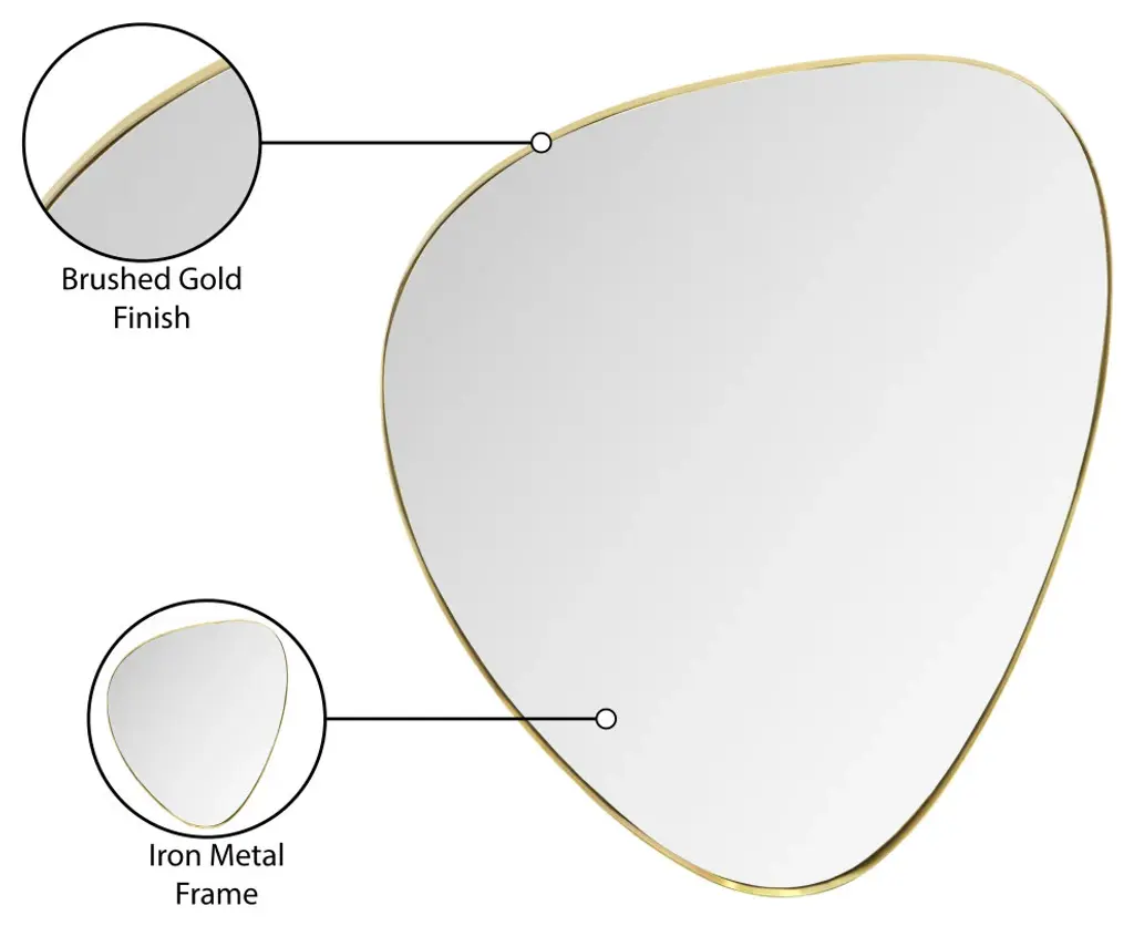 Count on this Finch gold mirror to reflect your good taste and remarkable style. This artfully designed mirror brings a bit of the art gallery to your home space with its unique shape and simple design. An iron metal frame with a brushed gold finish ensures an eye-grabbing look that instantly draws attention from the moment family and friends enter your room. Use it as a standalone focal point on a large wall or hang it above a bathroom vanity or dressing table for added oomph.Overall Product Dimensions: 29" W x 1.5" D x 36" HBrushed Gold FinishIron Metal FramePebble ShapeContemporary Design