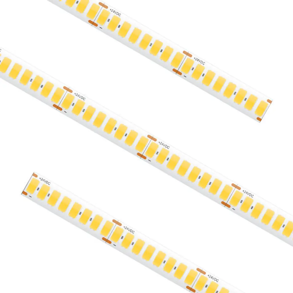 Fine 76 is a 24V single color LED strip designed for indoor installation (IP20). With 18W/m of power and a density of 126led/m, it is available with CRI>80 certification for optimal color rendering.Thanks to a 36º optic integrated in each LED, satisfies accent lighting by directing the light to more specific areas while remaining compatible with small format profiles.