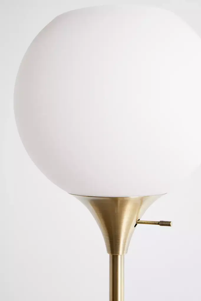 Elegantly modern floor lamp with a marble base, narrow metal neck and frosted glass globed shade, perfect for illuminating your space with a luxe touch. **Features** \- Floor lamp \- Plug-in \- Rotary switch on socket \- Requires 100W E26 medium base bulb - not included \- Shade included **Content + Care** \- Marble, metal, electronics \- Wipe clean \- Imported \- Made in compliance with US electrical standards. To use this item outside of the US, pair with an outlet adapter and voltage converter made specifically for use in your location. **Size** \- Dimensions: 10”dia x 71”h \- Shade dimensions: 10”dia \- Base dimensions: 9”l x 9”w x 1.5”h \- Wattage/Voltage: 100W/120V \- Cord length: 60” \- Weight: 14.3 lbs \- Shipping package dimensions: 14.73”l x 17.72”w x 13”h \- Shipping package weight: 17.16 lbs