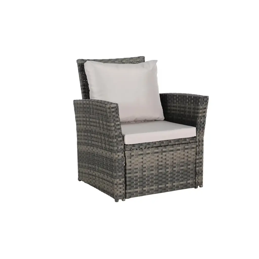 Enhance your outdoor space with this 4-piece patio furniture set, designed for comfort and style. The set includes four rattan chairs and a tempered glass coffee table, offering the perfect seating arrangement for your garden, backyard, porch, or poolside. Crafted with durable, all-weather PE wicker, this set is both stylish and practical. Removable cushions provide extra comfort and are easy to clean, making this set ideal for outdoor relaxation or entertaining guests.