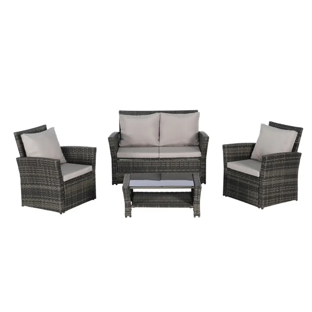 Fioneca 4-piece Outdoor Patio Rattan Wicker Furniture Set With Tempered Glass Coffee Table, Garden, Poolside, Lawn Chairs
