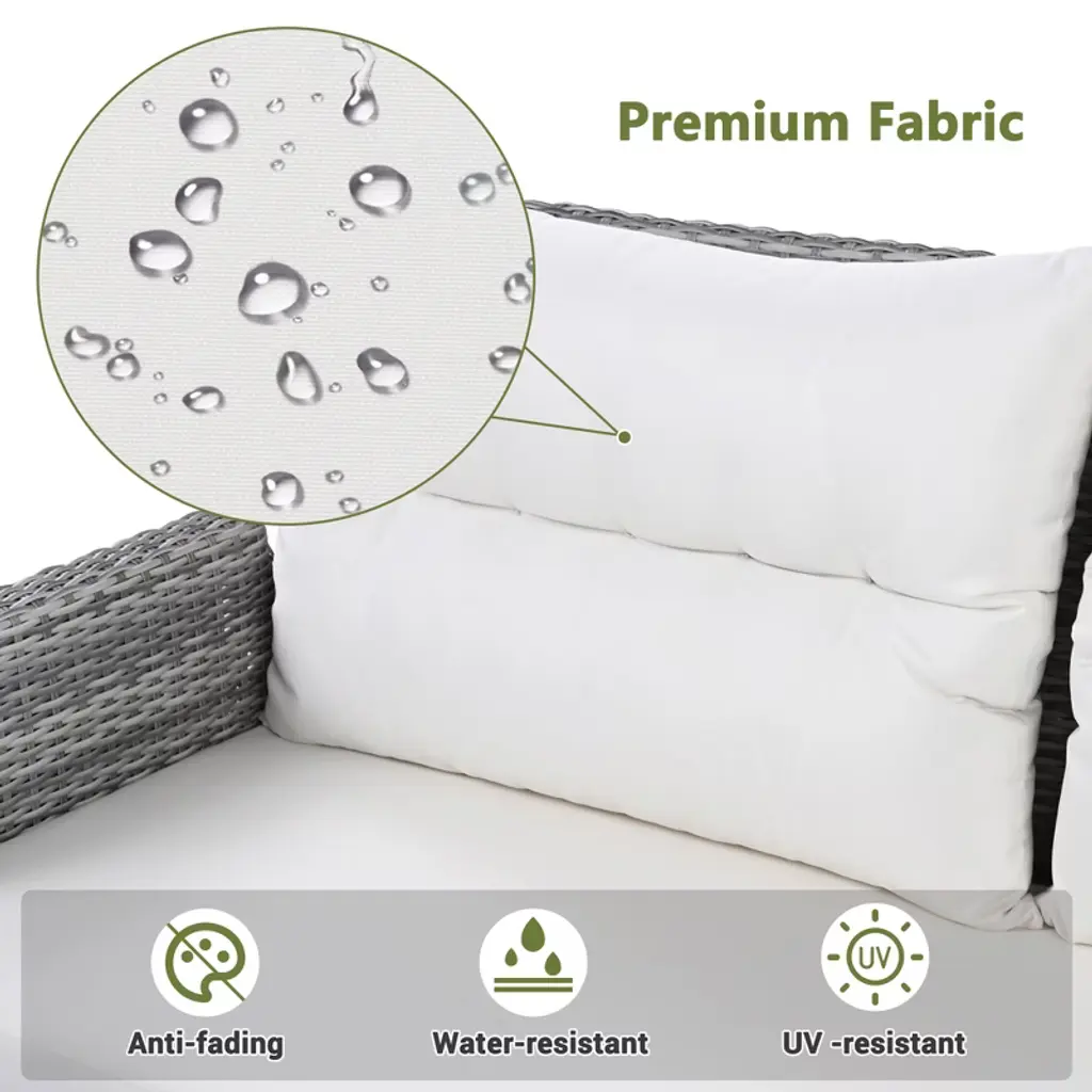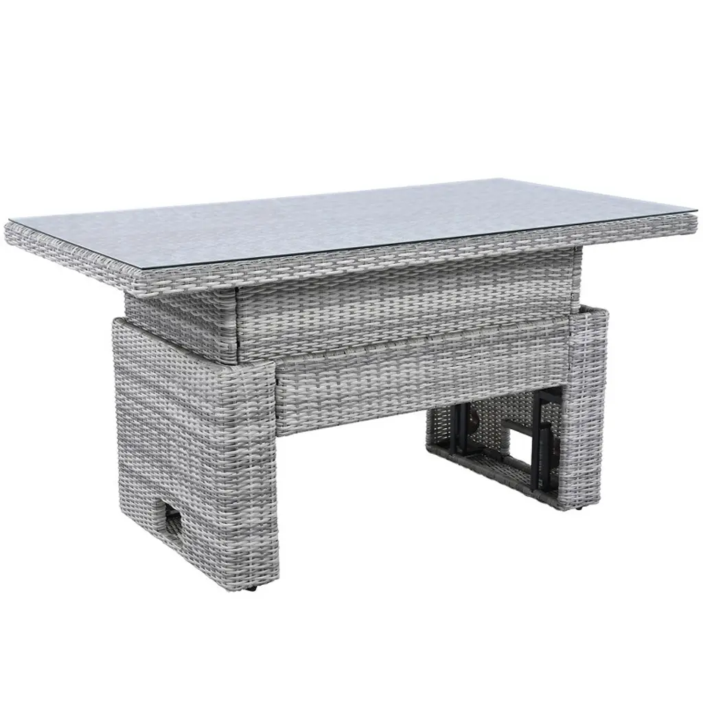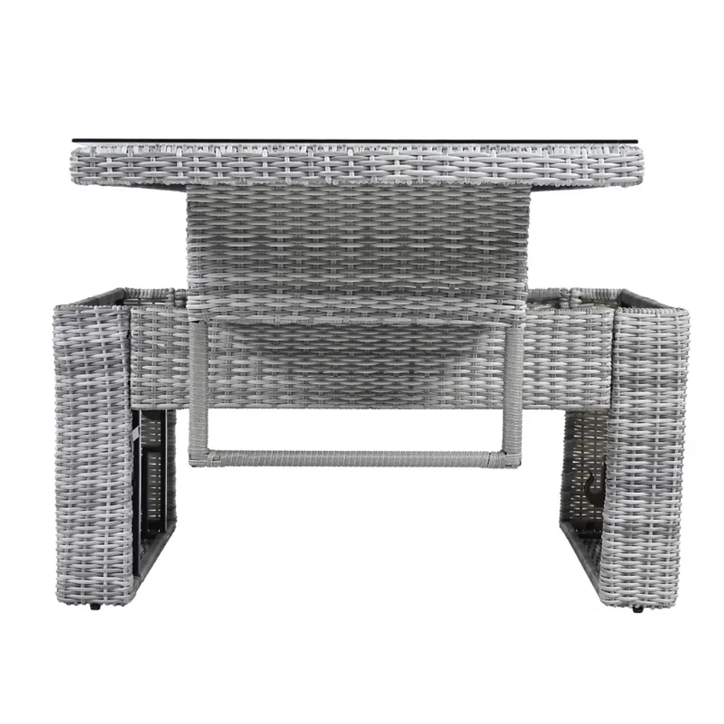 Upgrade your outdoor space with this versatile patio rattan furniture set. Featuring two recliners with extendable side tables, a height-adjustable central table, and two comfortable ottomans, this beige set is perfect for relaxing or entertaining. Crafted from durable PE rattan, it¡¯s designed to withstand all weather conditions, making it ideal for patios, lawns, backyards, or poolside areas.
