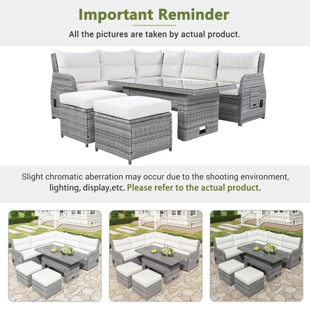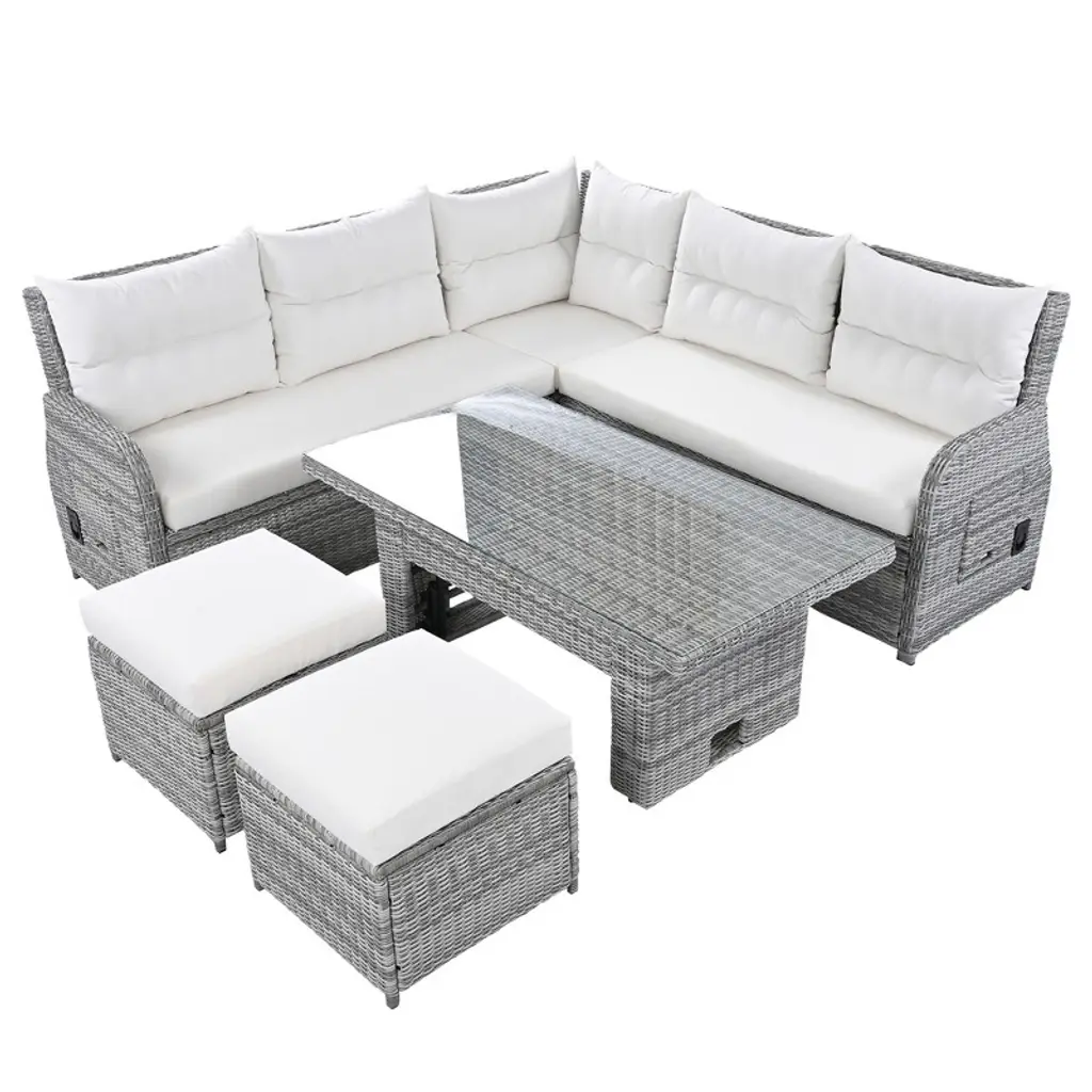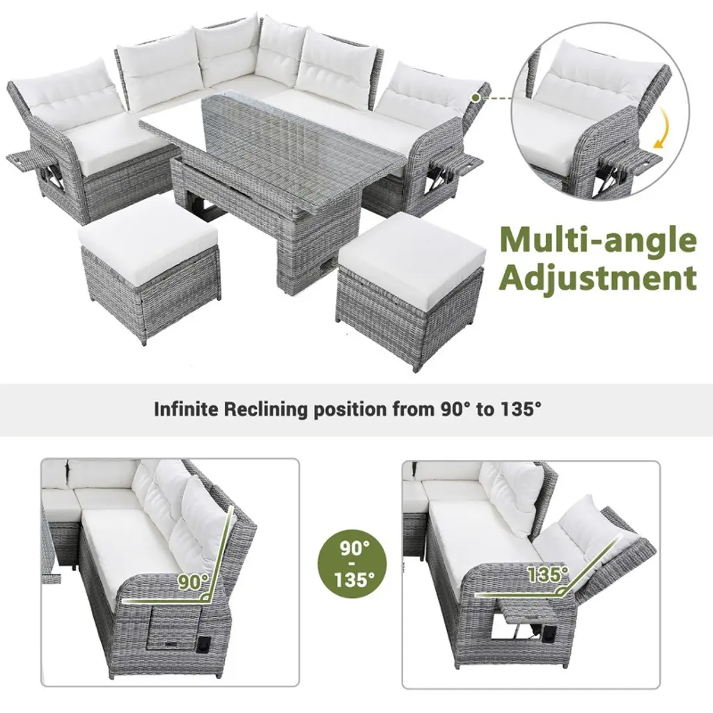Fioneca Outdoor Patio Rattan Furniture Set With Adjustable Table, Recliners & Ottomans ̈C Beige, Perfect For Backyard, Lawn, Or Pool