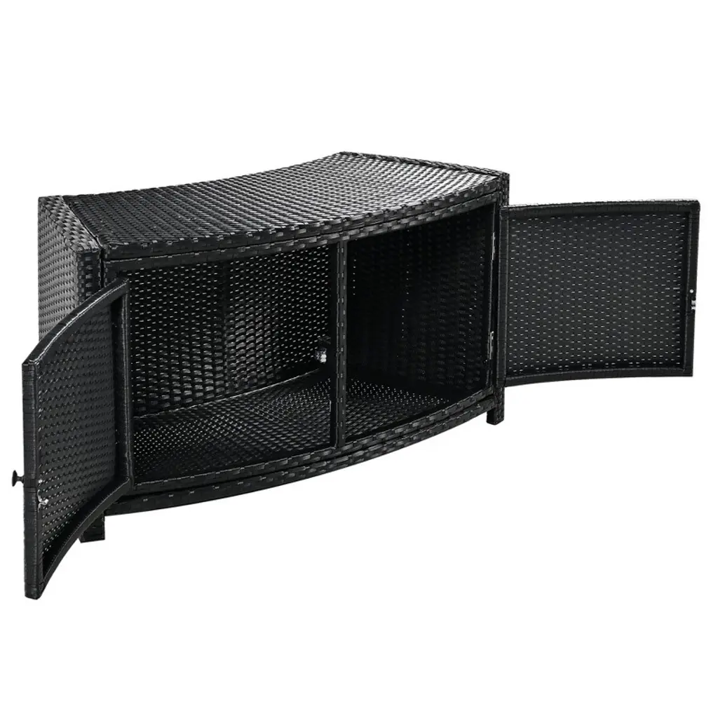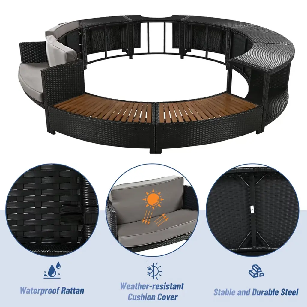 Upgrade your outdoor spa area or patio with this elegant spa surround rattan sofa set in grey. Designed with a mini sofa and plush cushions for maximum comfort, it also features built-in storage spaces for towels, spa accessories, and more. Crafted from weather-resistant rattan, this set offers both style and durability, perfect for poolside lounging, backyard gatherings, or creating a relaxing spa retreat.