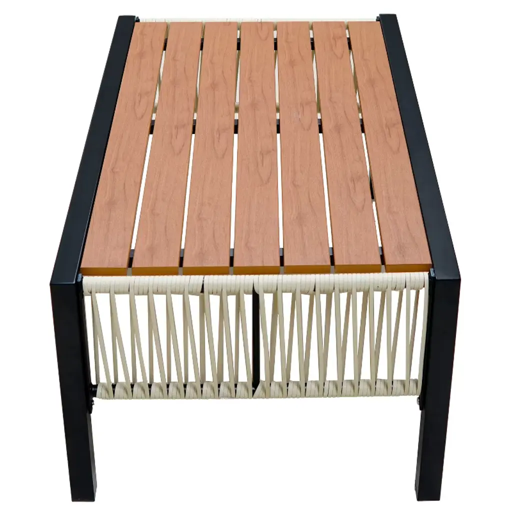 Fioneca U_style Dark Blue Multi-person Outdoor Iron Sofa Set With Table, Rattan Decoration, Waterproof & Rust-proof Patio Furniture For Garden & Lawn