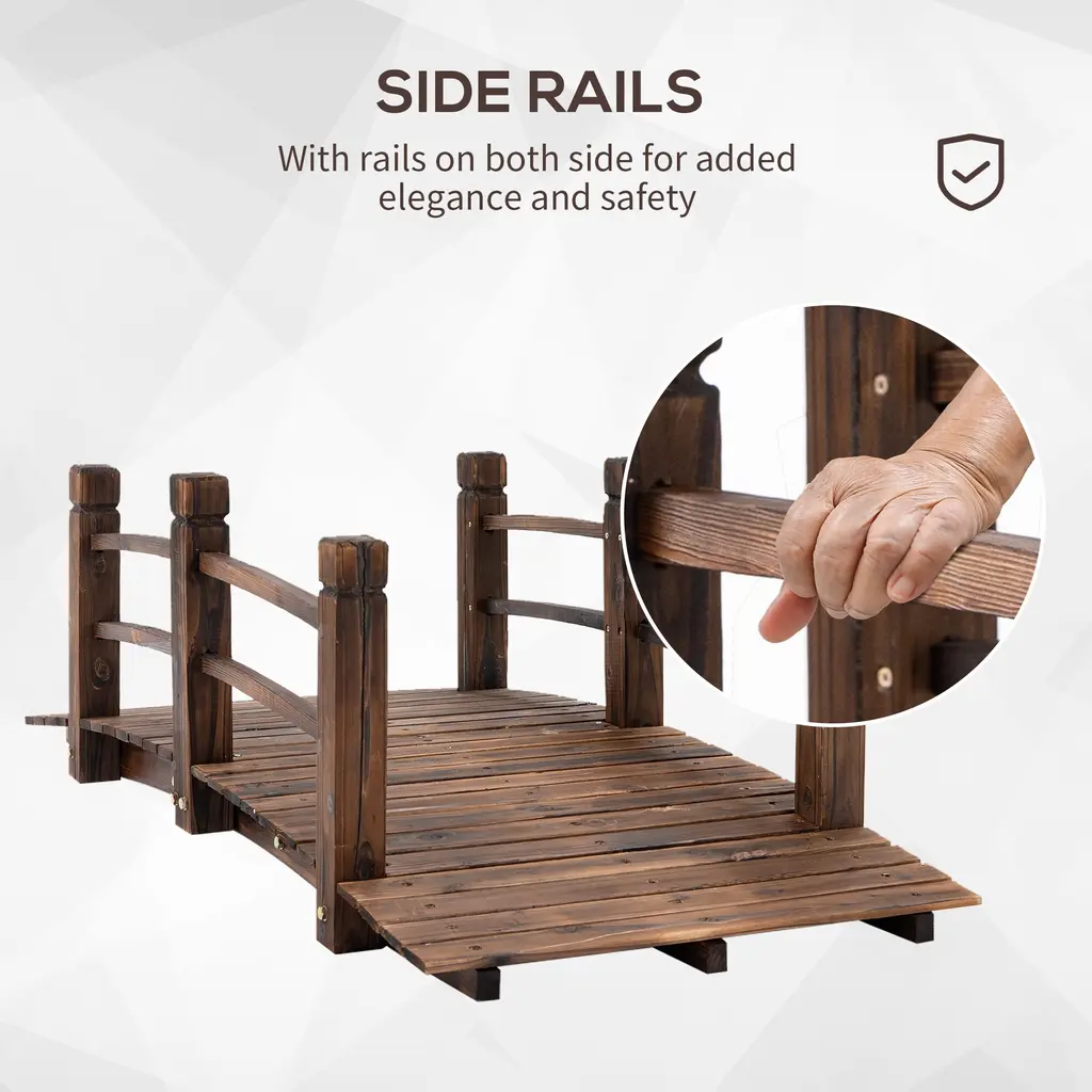 Fir Wood Garden Bridge Arc Walkway With Side Railings For Backyards, Gardens, And Streams, Stained Wood, 60" X 26.5" X 19" - Brown