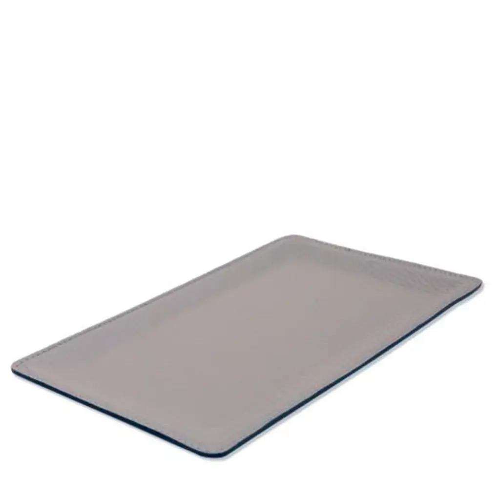 A superlative showcase of craftsmanship, this empty-pocket tray is entirely handmade of fine and soft genuine grain leather, boasting a delicate gray hue enhanced with a textural effect. Timeless and versatile, it will make a sophisticated addition to an elegant console in a modern or contemporary entryway.