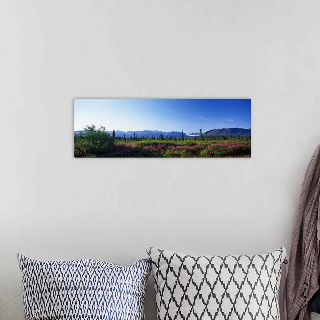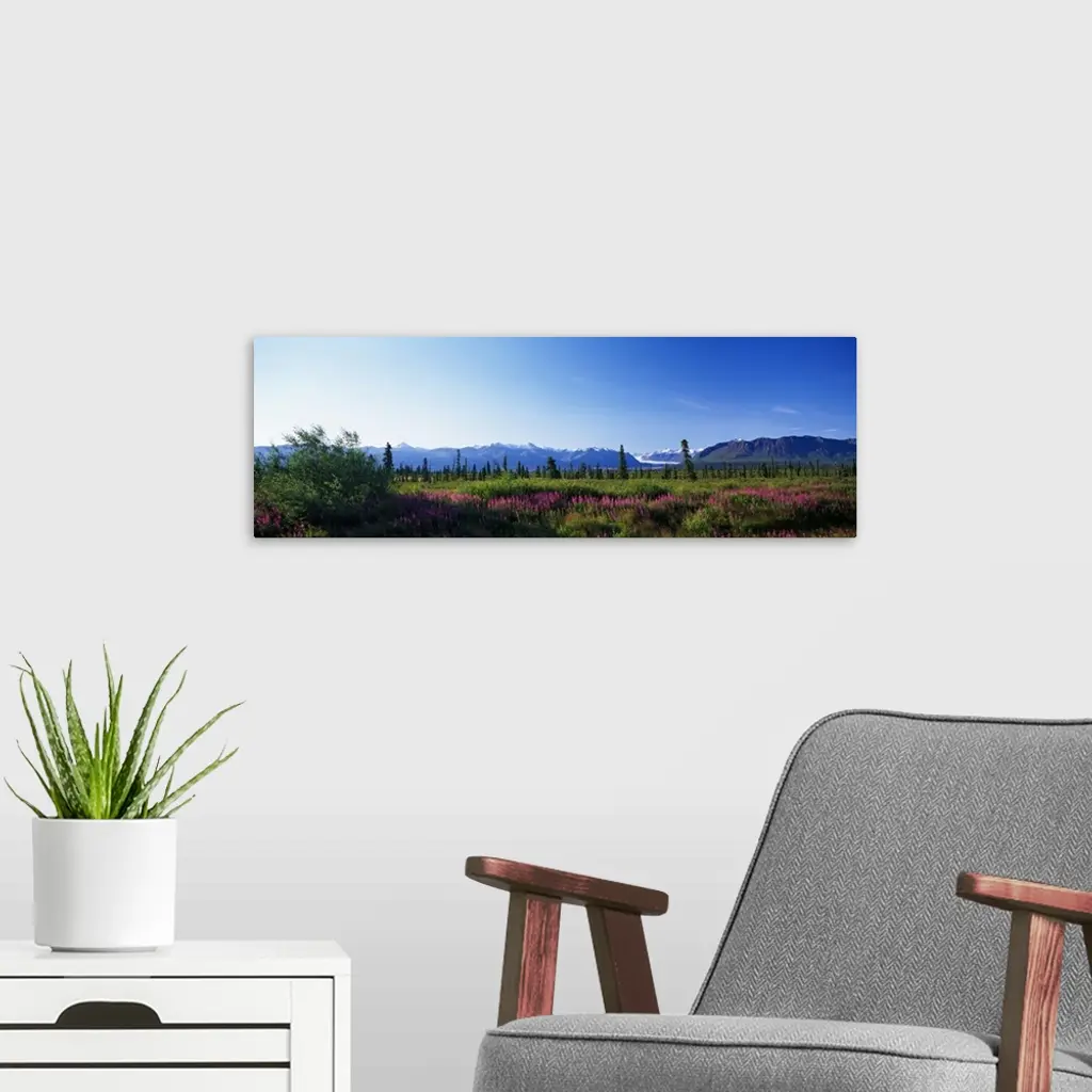 Fireweed flowers (Epilobium latifolium) in bloom, distant Chugach Mountains, summer, Alaska wall art for home and office decor. Discover canvas art prints, photos, mural, big canvas art and framed wall art in GreatBigCanvas.com's varied collections.