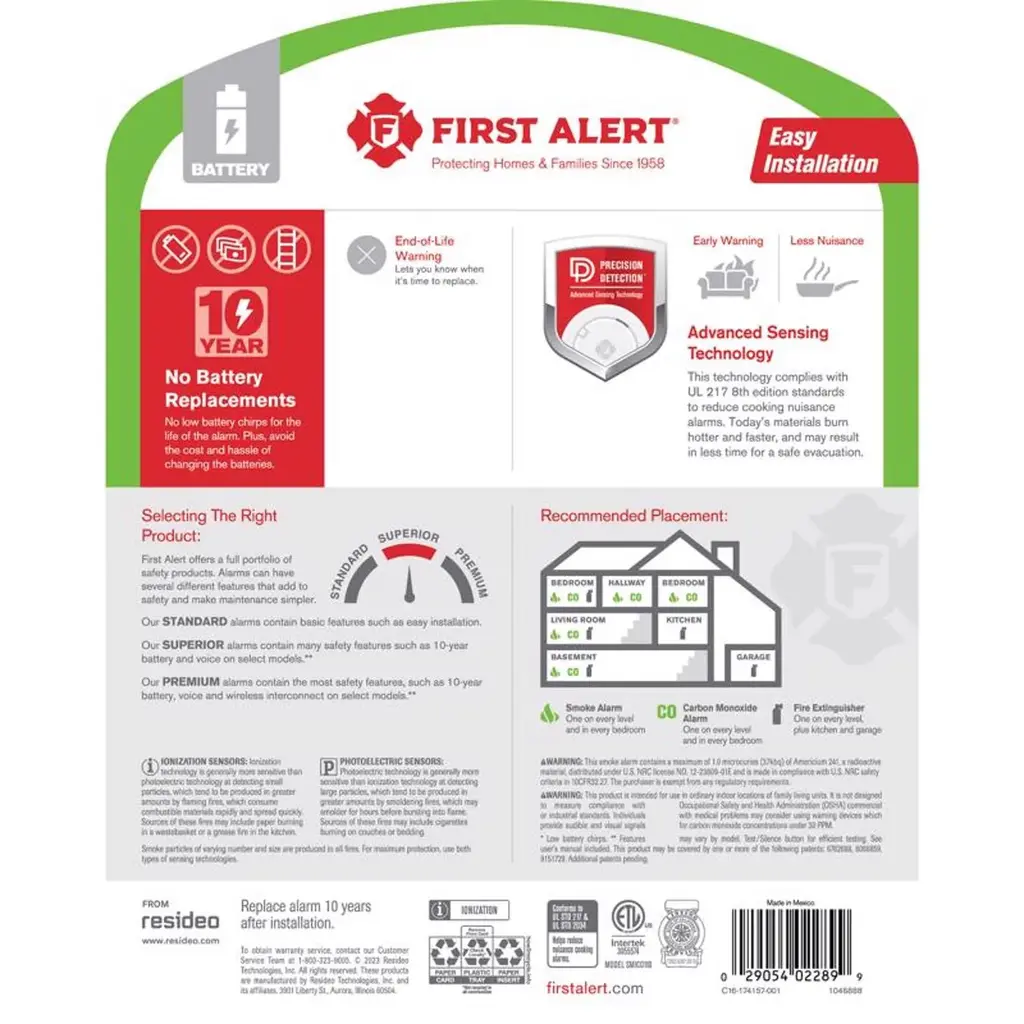 First Alert 10 Year Ionization Smoke And Carbon Monoxide Detector - N/a - Battery