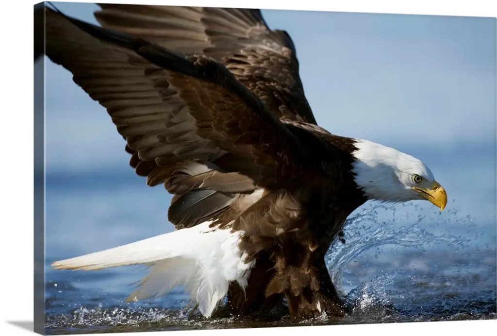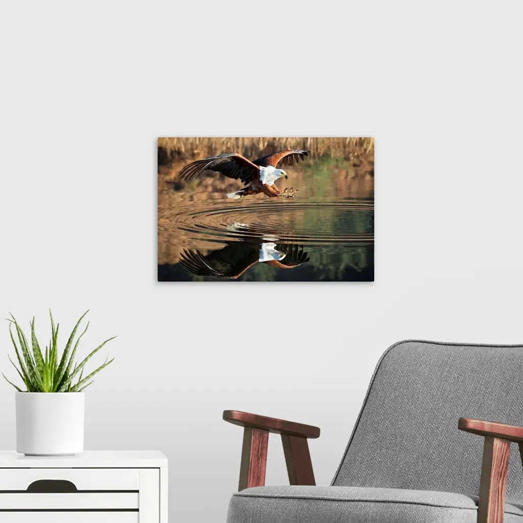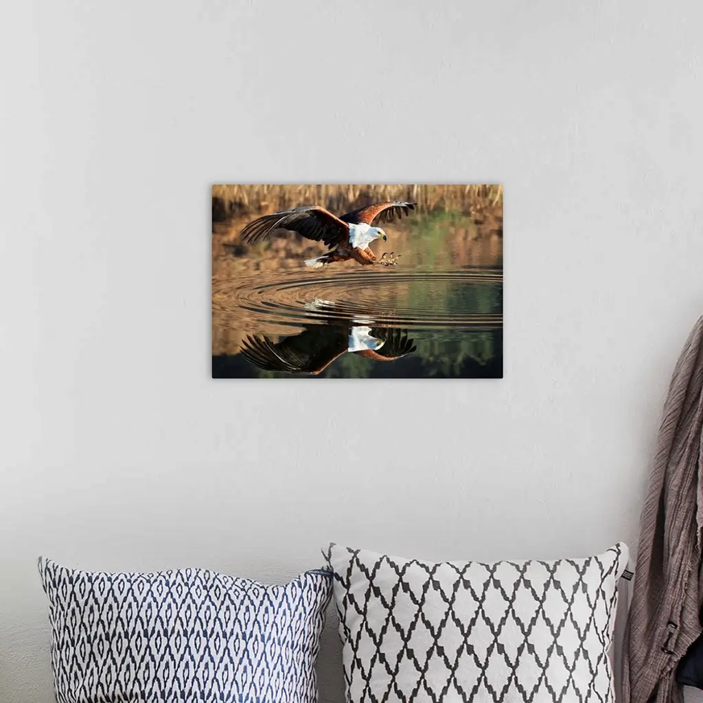 A large Fish Eagle extends its claws over the water, Drakensburg, Africa.