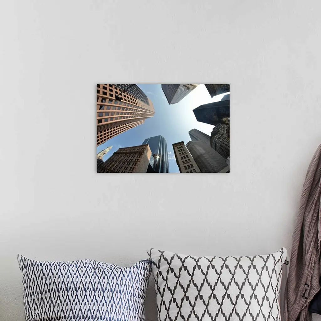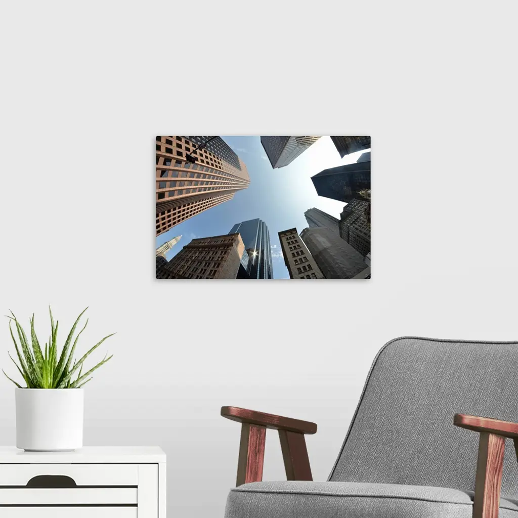 Fish-eye lens of building, Boston, US. wall art for home and office decor. Discover canvas art prints, photos, mural, big canvas art and framed wall art in GreatBigCanvas.com's varied collections.