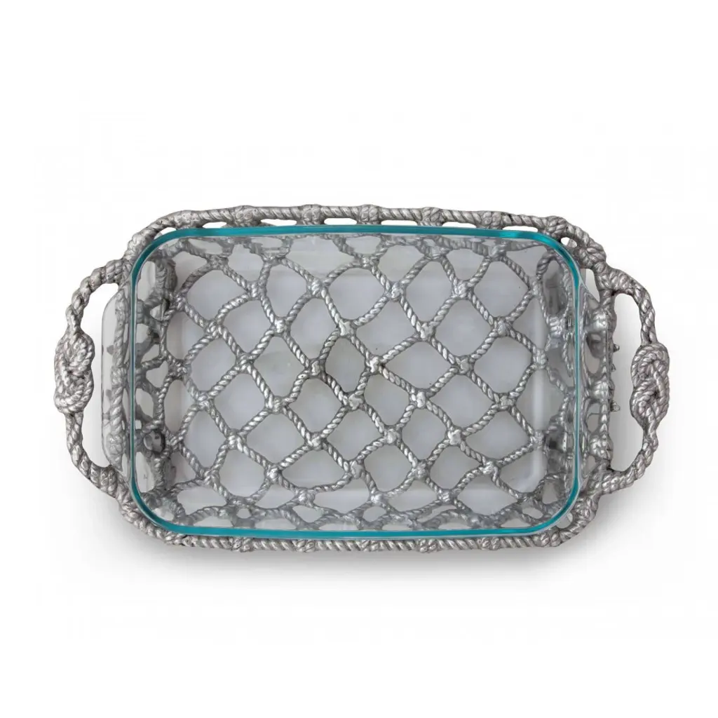 Exceptionally skillful and uniquely designed Casserole Holder, that will stand out on every table. The Holder appears to be woven from nautical rope and then casted in lustrous aluminum. Beautifully detailed fish on all four corners, ensure a stable stand on even surfaces. Get your hot dishes straight from the oven to your family and guests and enjoy a touch of nautical ambience.