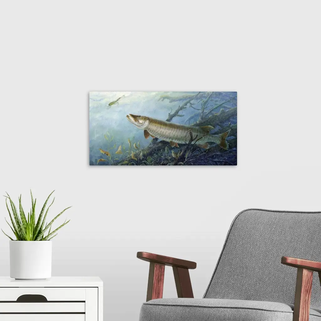 Fish of a Lifetime Muskie wall art for home and office decor. Discover canvas art prints, photos, mural, big canvas art and framed wall art in GreatBigCanvas.com's varied collections.