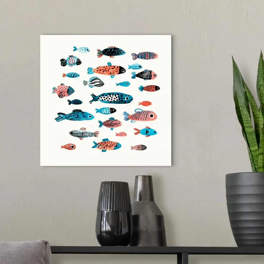 Fish School I wall art for home and office decor. Discover canvas art prints, photos, mural, big canvas art and framed wall art in GreatBigCanvas.com's varied collections.