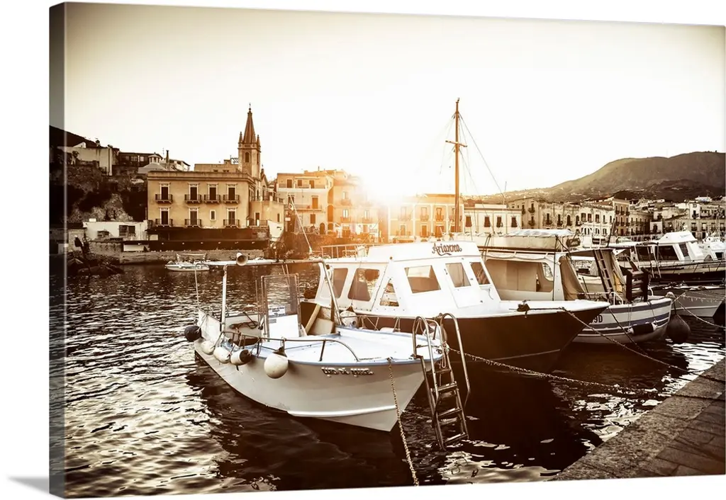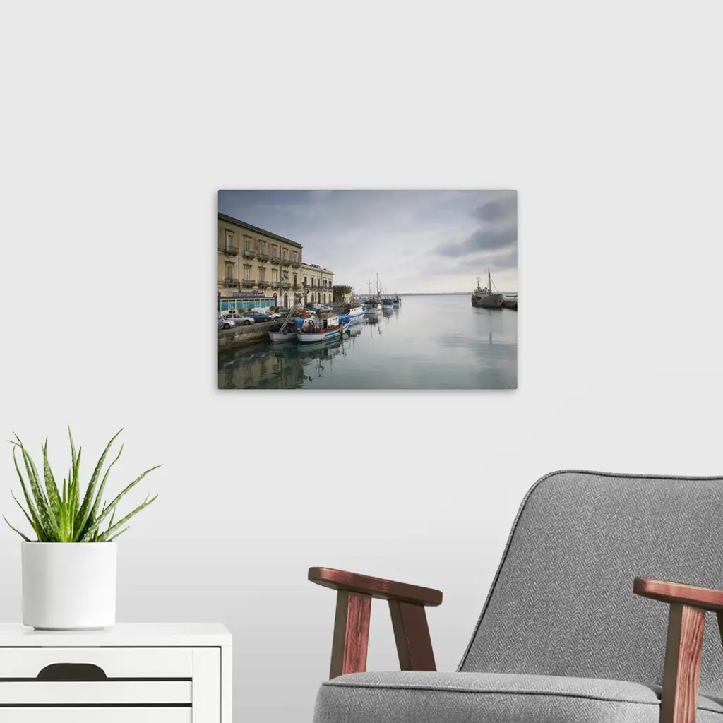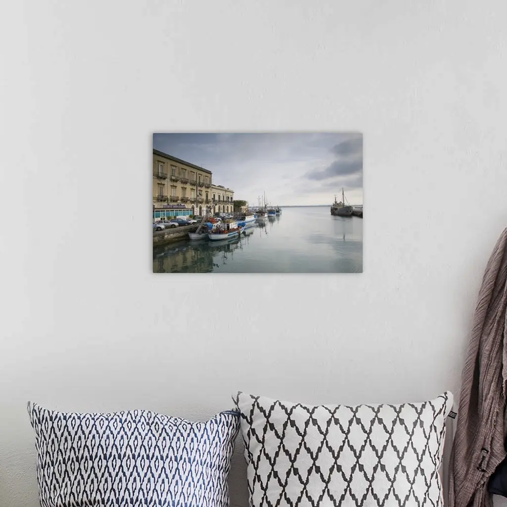 Fishing boats docked at a harbor, Ortygia, Siracusa, Sicily, Italy wall art for home and office decor. Discover canvas art prints, photos, mural, big canvas art and framed wall art in GreatBigCanvas.com's varied collections.