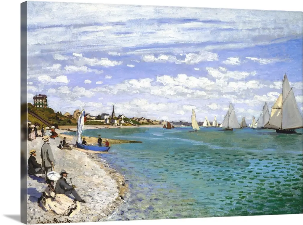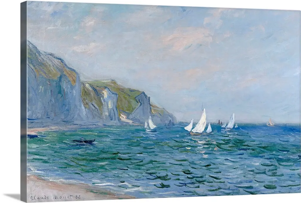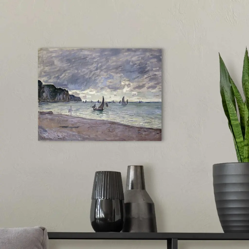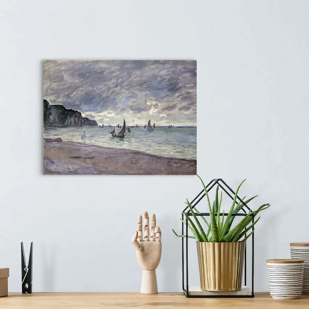 Fishing Boats In Front Of The Beach And Cliffs Of Pourville, 1882 wall art for home and office decor. Discover canvas art prints, photos, mural, big canvas art and framed wall art in GreatBigCanvas.com's varied collections.