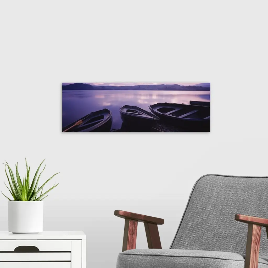 Fishing boats moored in a lake, Loch Awe, Strathclyde Region, Highlands Region, Scotland wall art for home and office decor. Discover canvas art prints, photos, mural, big canvas art and framed wall art in GreatBigCanvas.com's varied collections.