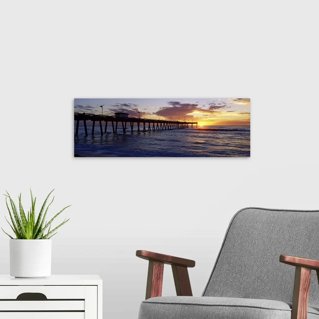 Fishing Pier Over The Sea At Dusk, Venice Fishing Pier, Brohard Park, Venice, Sarasota County, Florida,