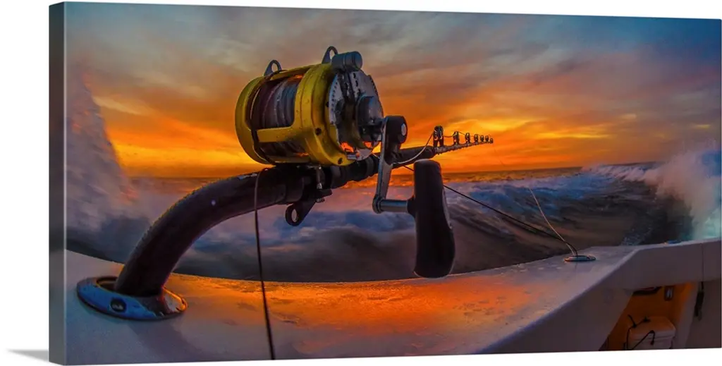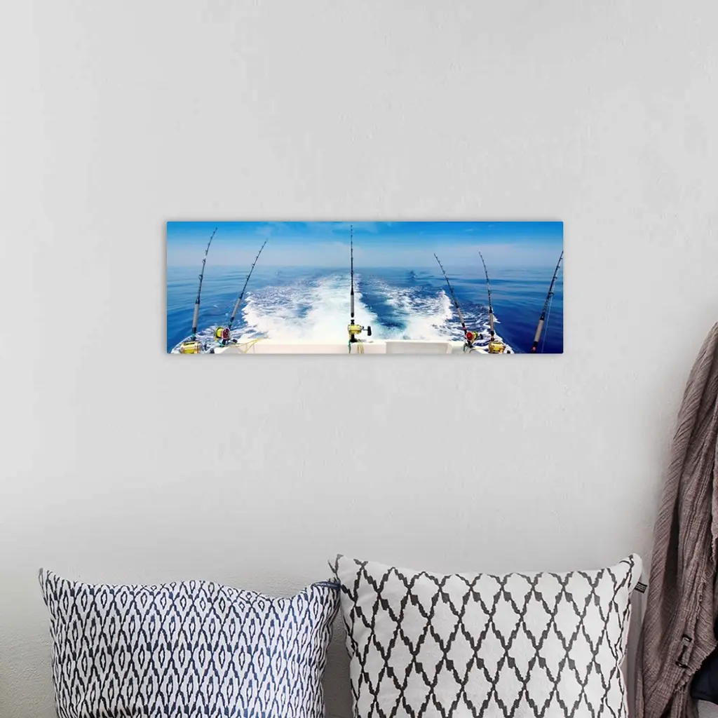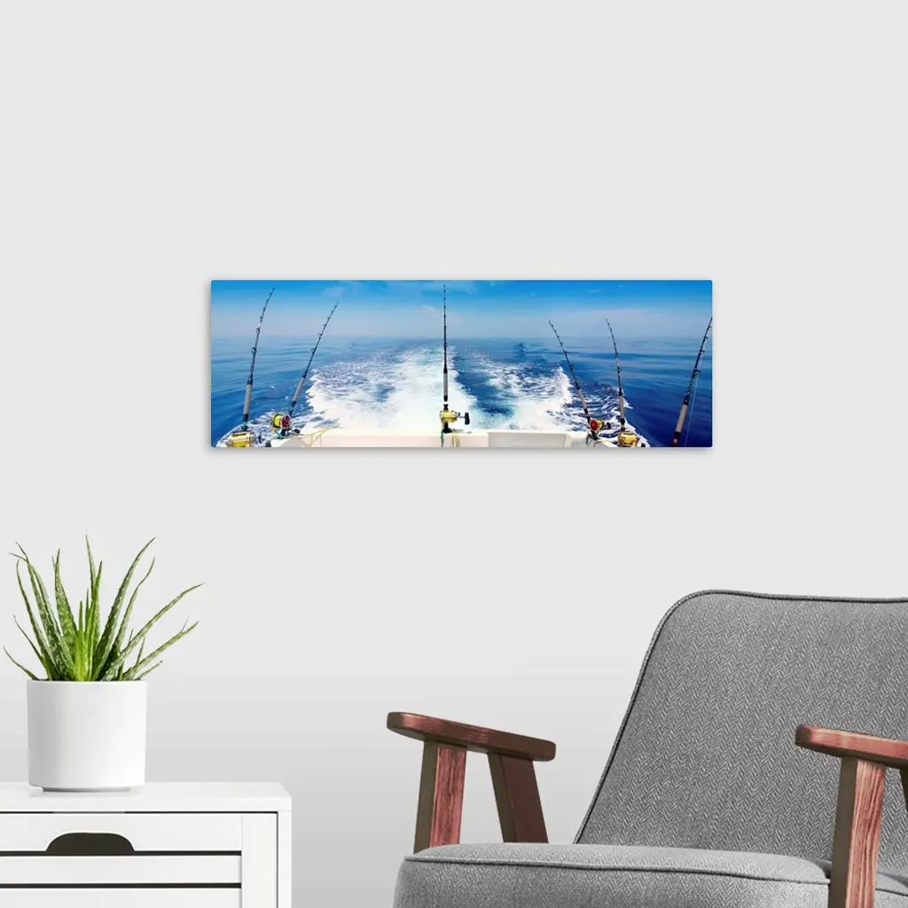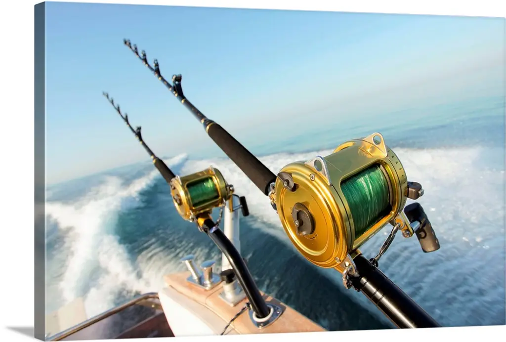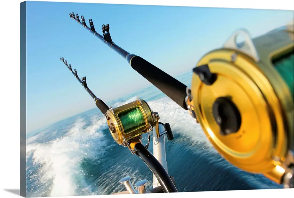 Fishing Reels With Cast Lines Off The Back Of A Boat