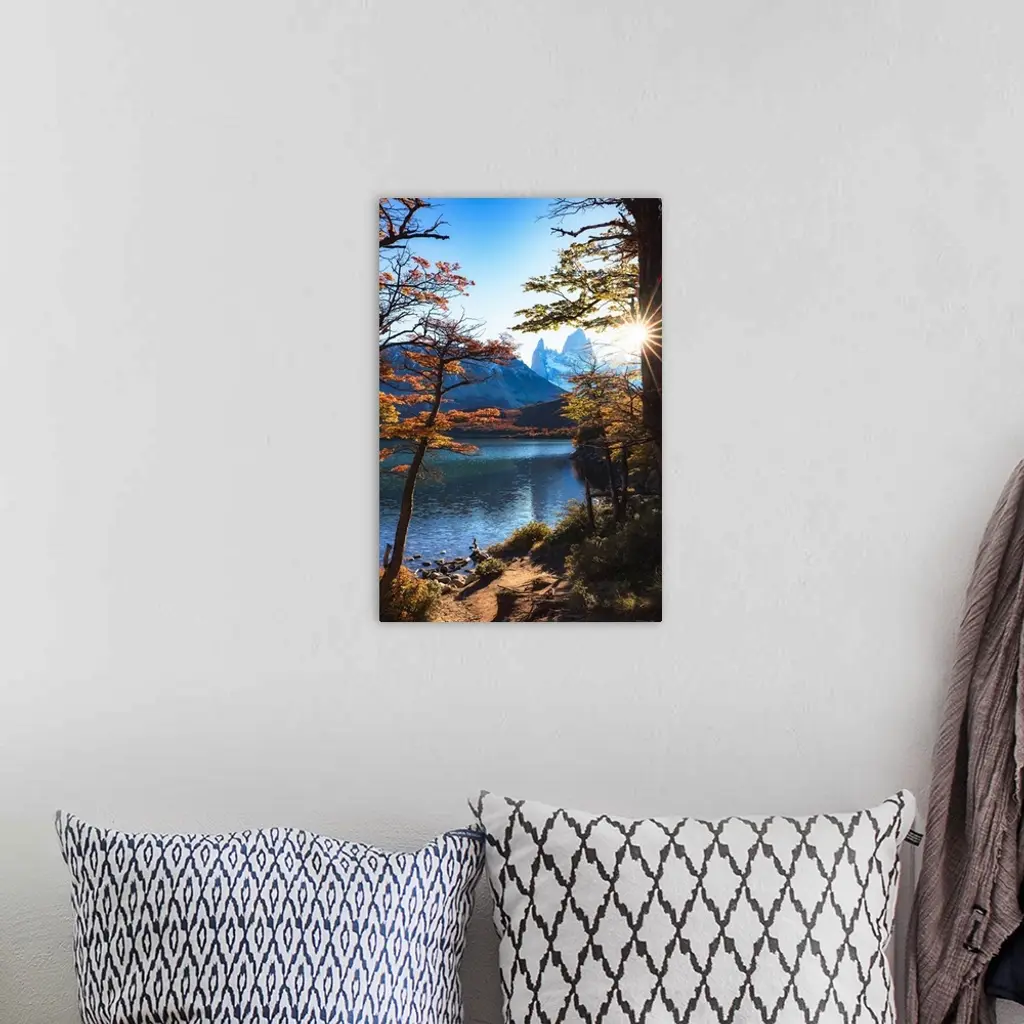 Fitzroy Mountain At Sunset Reflecting In The Laguna Capri Lake, Patagonia, Argentina
