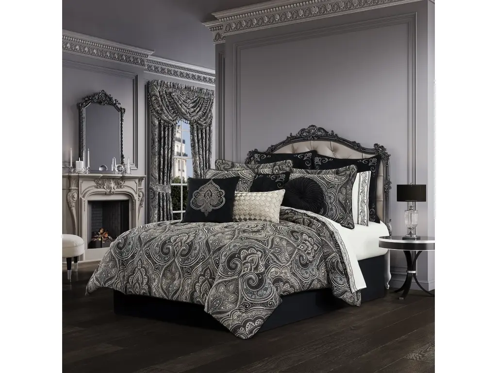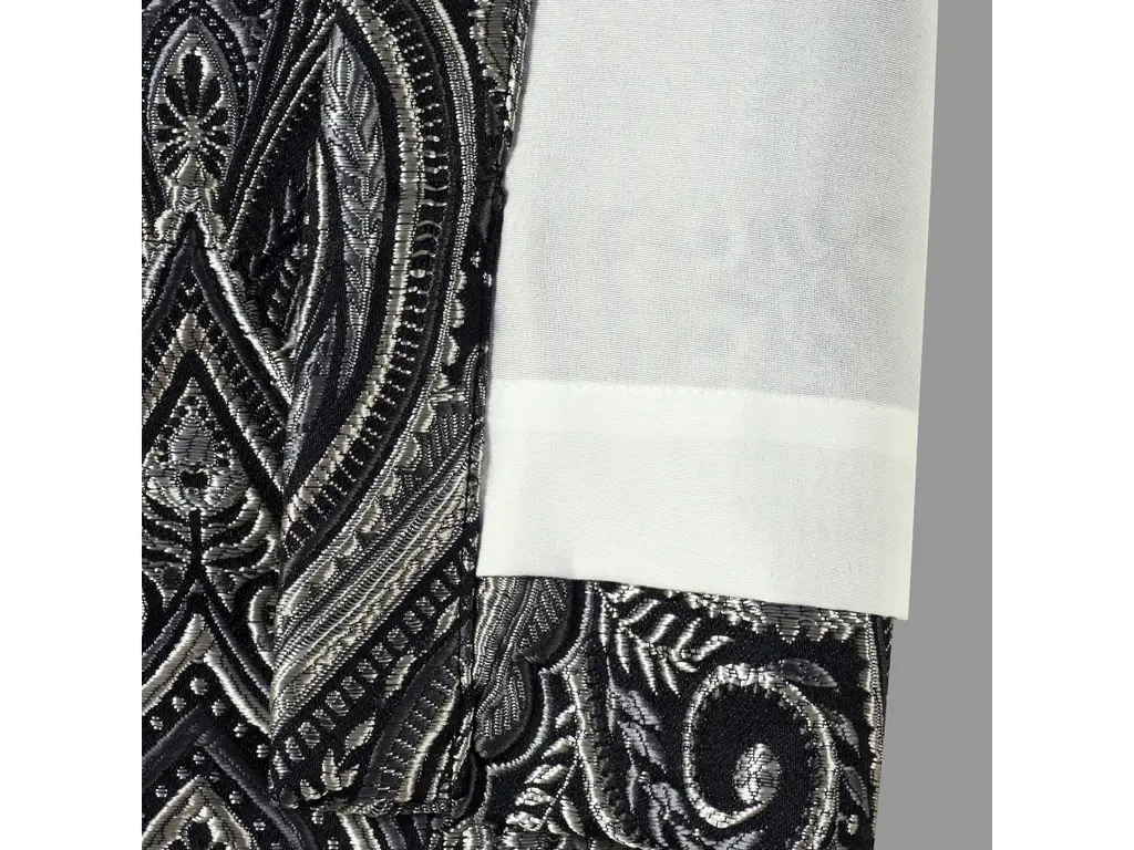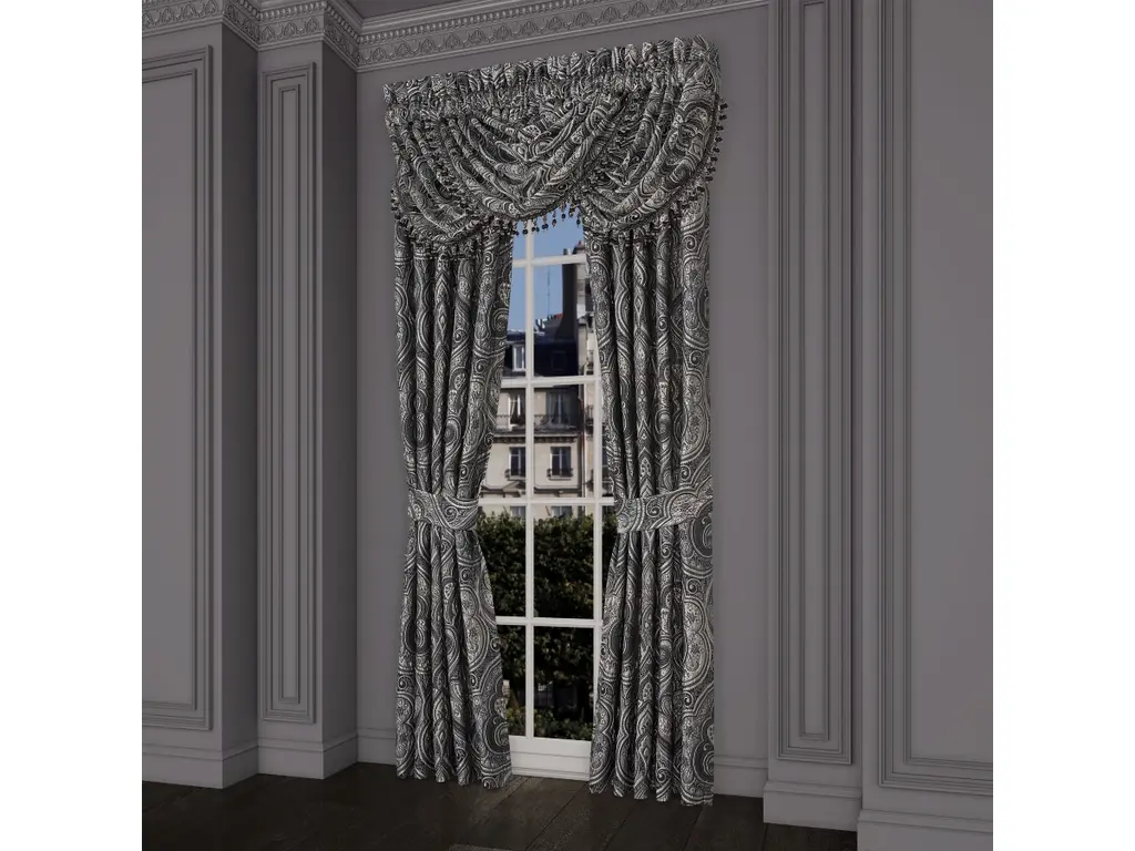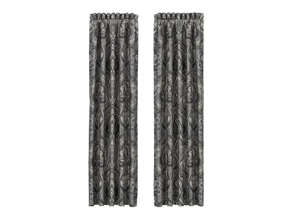 The Davinci Window Panels are made of high quality woven jacquard in sophisticated yet dramatic black, pewter, charcoal and silver tones, that coordinates beautifully with the bed set. Fully lined to provide darkness for comfortable sleep and relaxation. The finishing touch is the matching tie-backs which help create an open airy look and the panels can be paired with the Davinci valance to complete your bedroom windows.