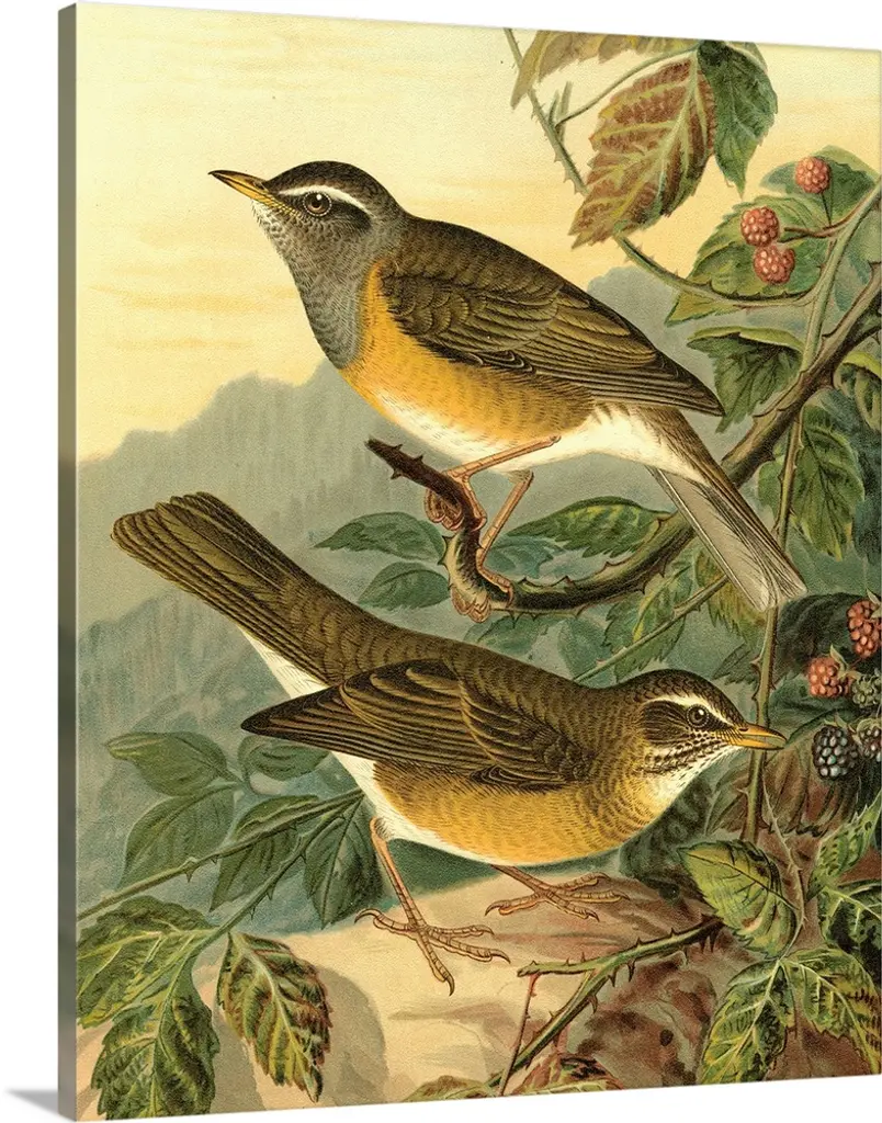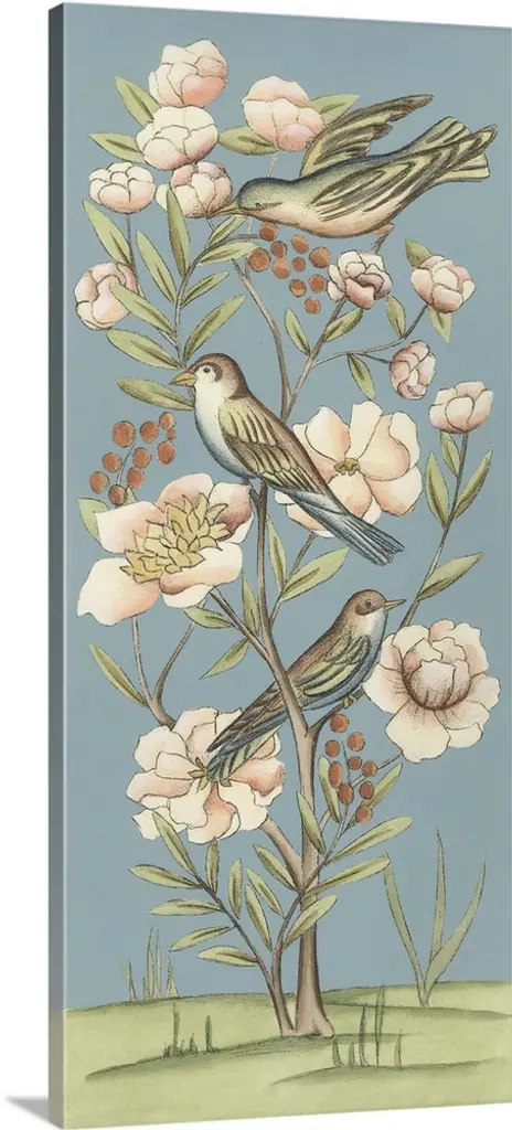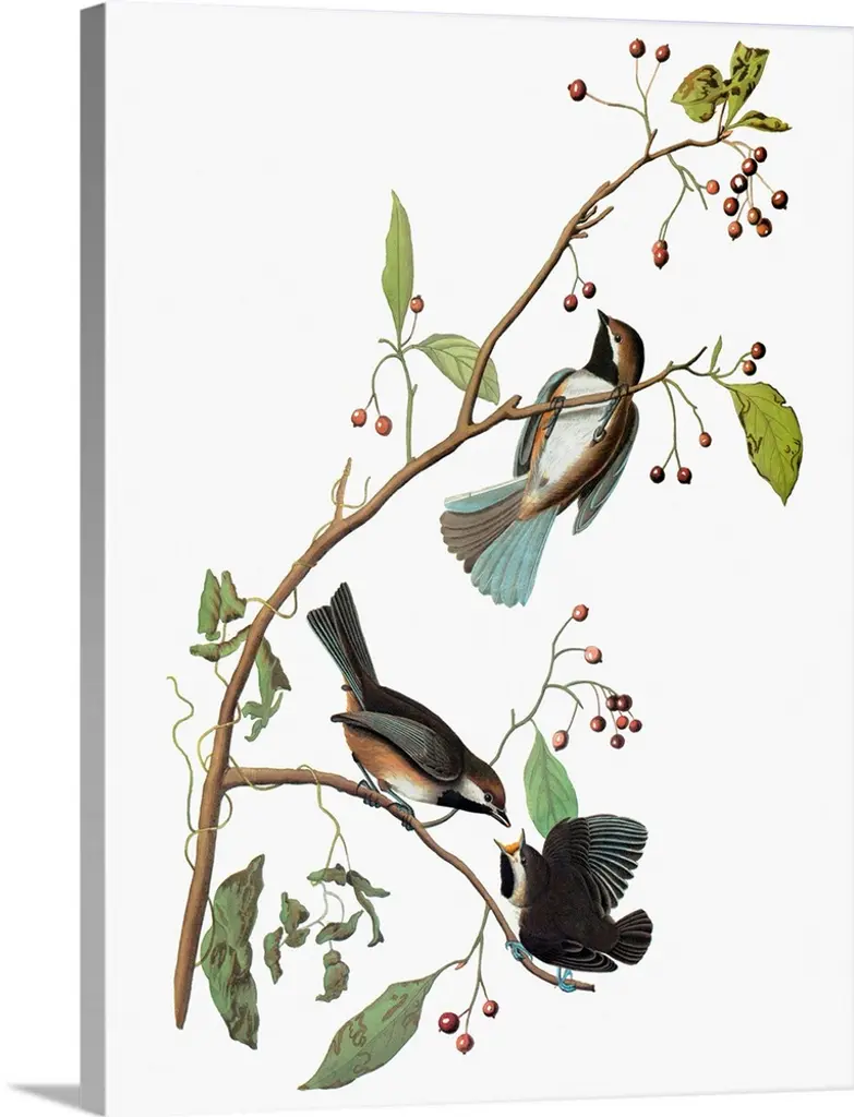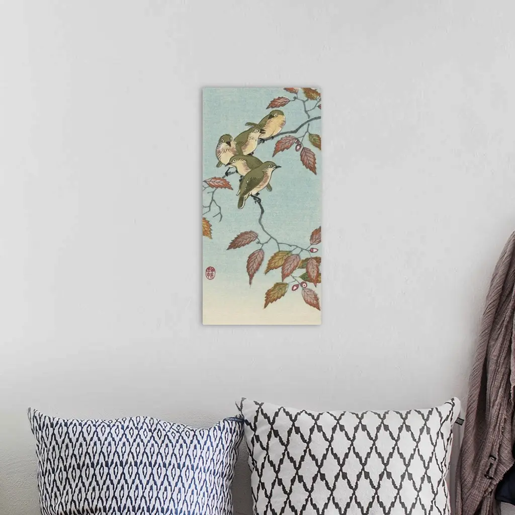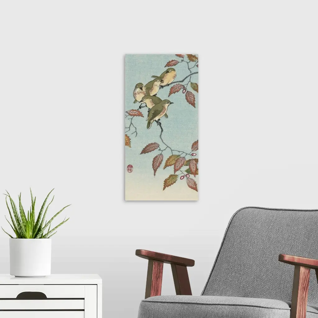 Five Small Birds On A Twig By Japanese Artist Ohara Koson