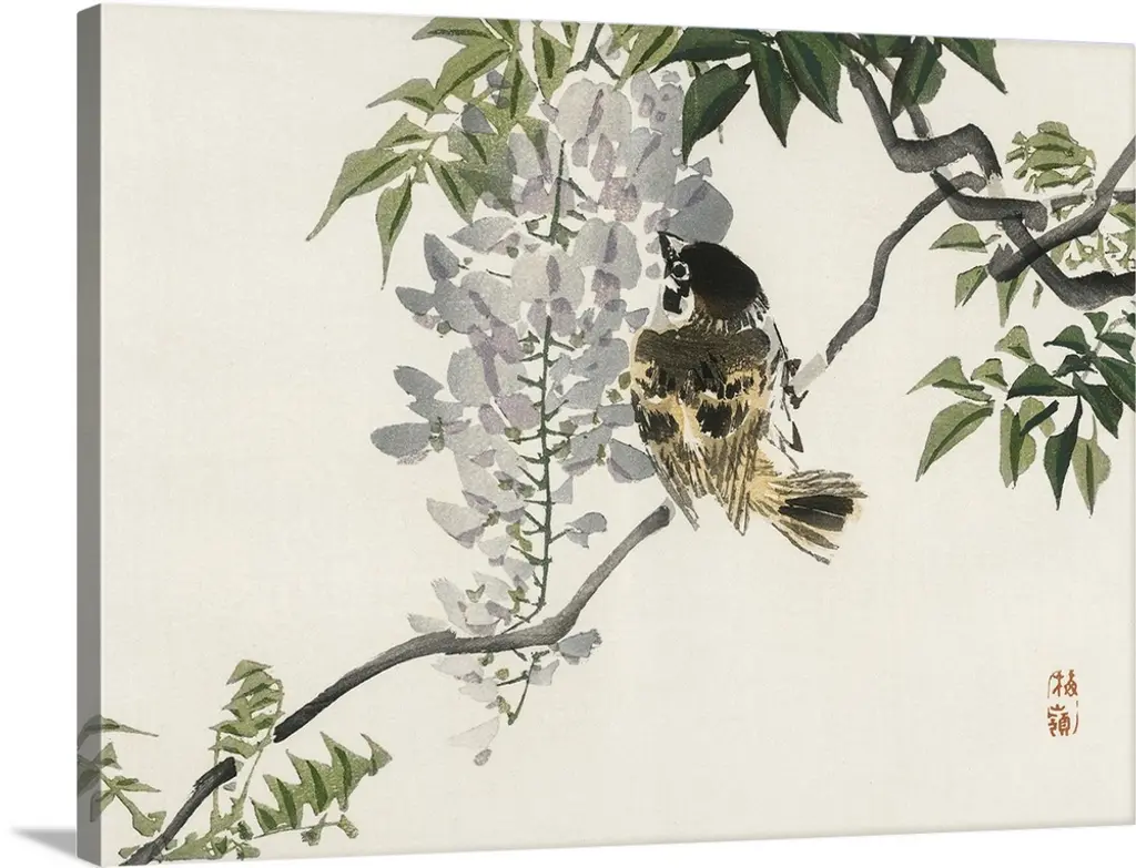 Five Small Birds on a Twig, by Japanese artist Ohara Koson, 1877 - 1945. Ohara Koson was part of the shin-hanga, or new prints movement.