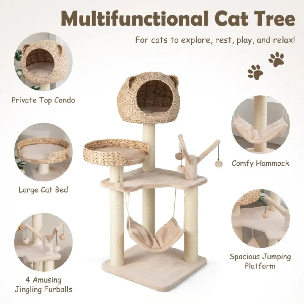 Five-story cat tree with hammock