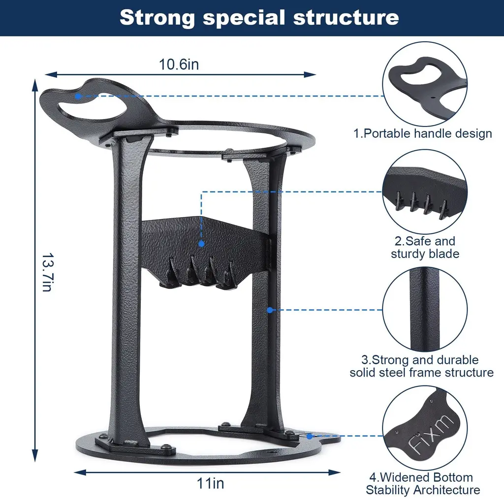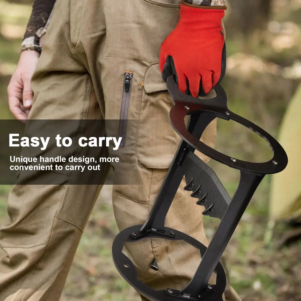 DURABLE MATERIAL: The size of this wood splitter is 13.7*10.6*11 inches. It is formed by high-carbon steel through many processes. The blade is firm and tenacious in terms of strength and hardness. It's not easy to get rusty or become dull. More vitally, it can withstand a huge impact of cutting wood. The gloves that we provided can keep the thorns from stabbing your hands while chopping wood.CONVENIENT TO CARRY: This type of detachable wood cracker is specially designed to be lightweight and portable, which makes it easy and convenient for you to carry around. Besides, it doesn't require any electricity to get it activated, so it is good for the environment. It can be widely used for outdoor camping, barbecue, picnic, backyard, etc.SAFE TO USE: Anyone can use this wood cutter as the blade has no sharp edges. You can even use it to chop wood with only one hand. All you need to do is to put the wood into the wood splitter and use the hammer to chop wood, then you will get an array of firewood. In this way, you don't have to worry about the sharp shape of axe getting yourself hurt.SOLID STRUCTURE: The firewood splitter is equipped with two widened arrow-shape side poles so as to improve stability and holding power. What's more, the broadened base comes with 4 extra screw holes. With these screw holes, you can place the log splitter on the stump or other locations to make it sturdy and durable.EASY INSTALLATION: This removable log splitter is way easy to install. It only takes a few minutes to use the screws to secure the top ring and the base before first use. After installation, you can start to use the product. Reminder: Please make sure to turn all the screws for several times and tighten them up before use in case that the screws loose in the process.Feature:Specification:Color: BlackMaterial: High-Carbon SteelProduct Size: 13.7*10.6*11 inchesPackage:1 * Firewood Kindling Splitter