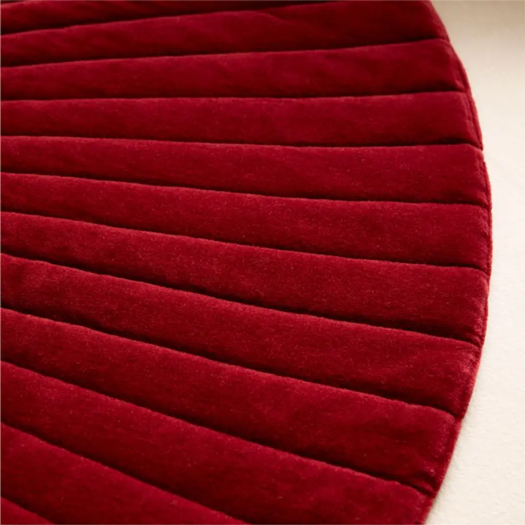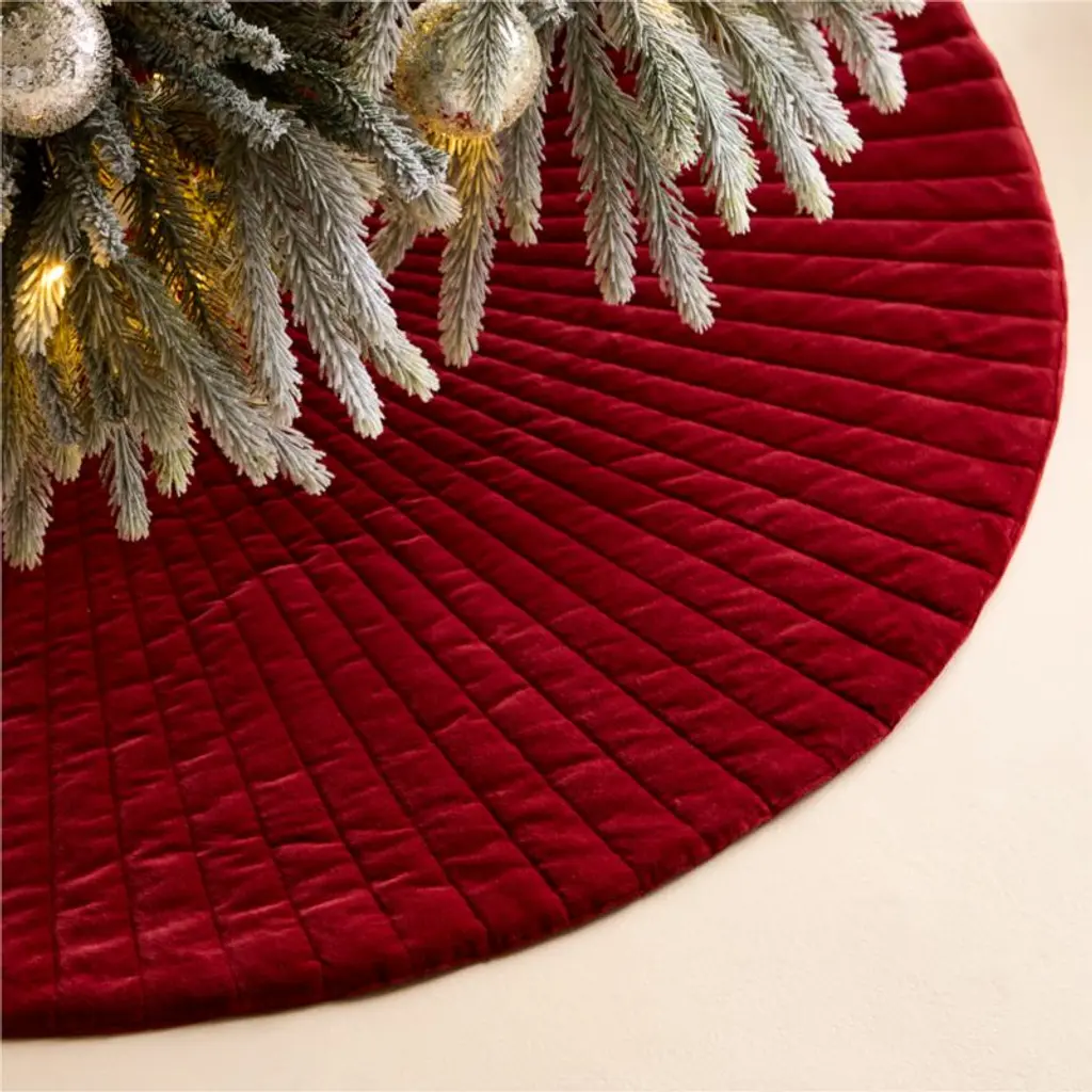 Rich red velvet Christmas tree skirt is woven from 100% certified organic cotton with a subtle sheen. Pair with our Flake velvet Christmas stockings. We especially love pairing this warm red hue with our aged brass holiday decor. Personalize with a monogram or name. CB2 exclusive.