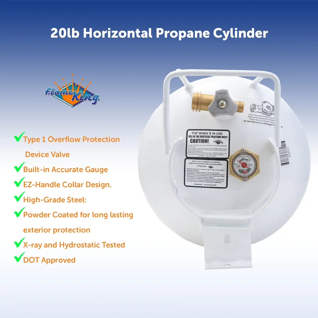 Flame King 20lb Horizontal Propane Cylinder Tank With Valve And Gauge - White - Steel