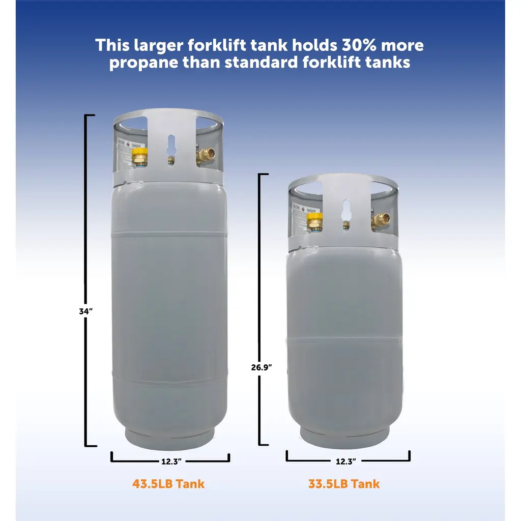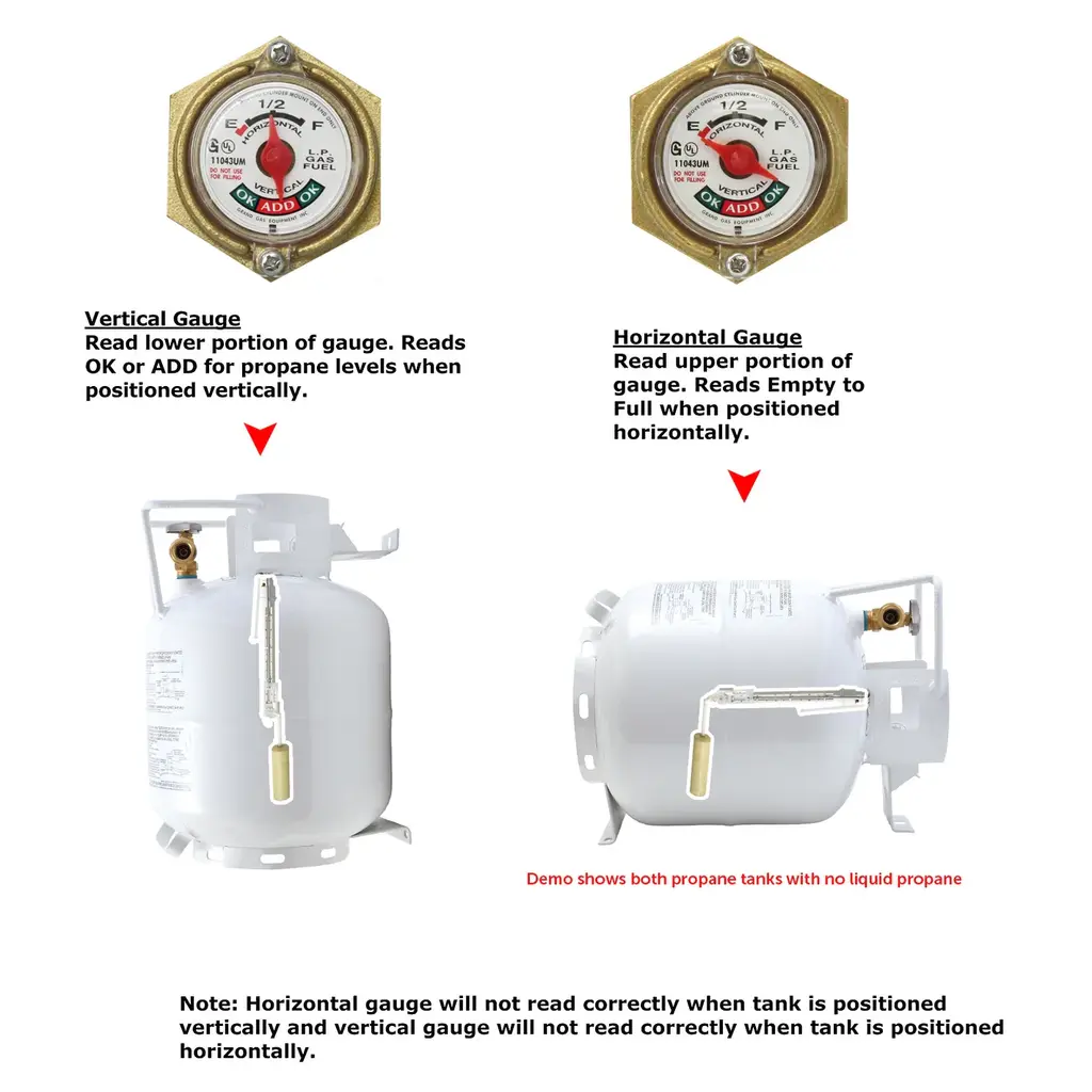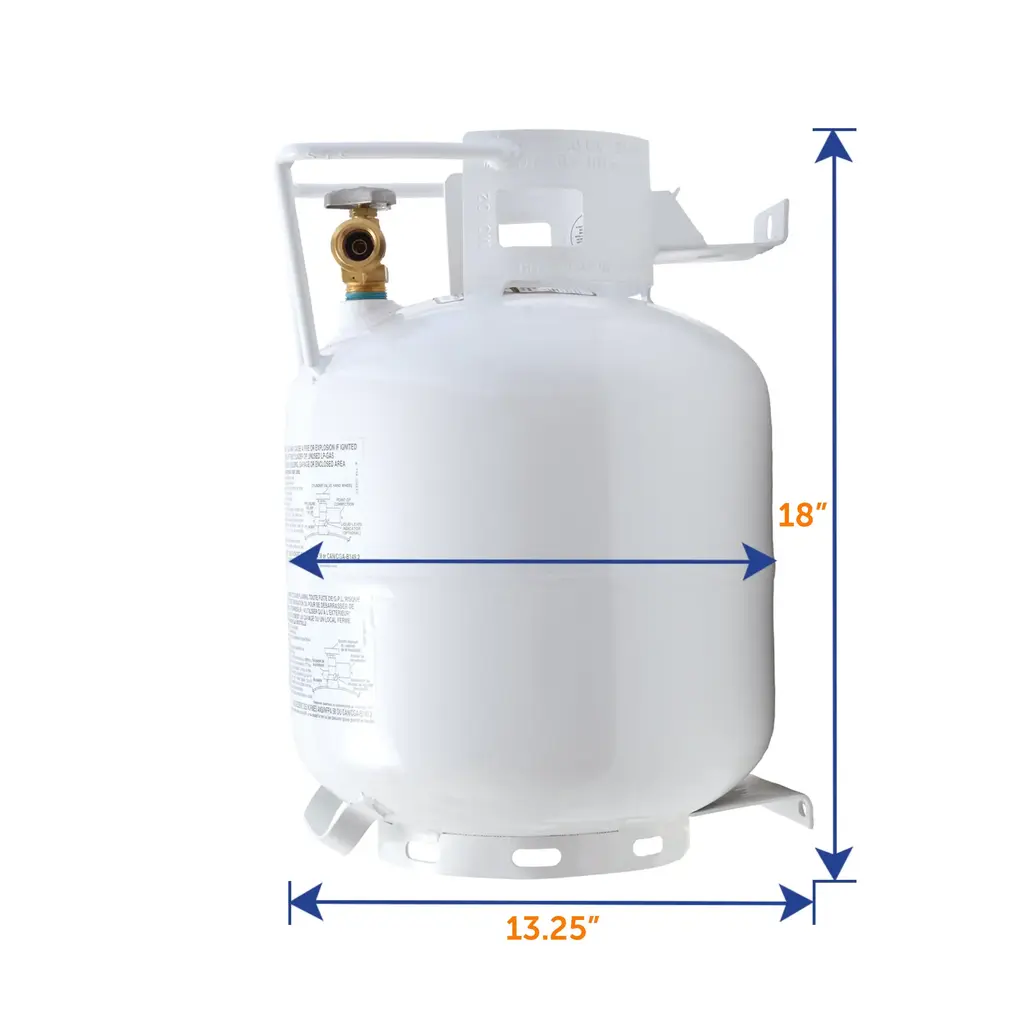 Flame King presents the 20LB Horizontal Propane Refillable Cylinder with OPD Valve and Gauge - the perfect solution for those who never want to run out of propane. Made with high-quality steel and designed to be used in both vertical and horizontal positions, this cylinder is lightweight, strong, and extremely versatile. The EZ-HANDLE collar design includes a built-in handle without sharp edges, while the stable bracket feet provide secure footing with a bolt-down option. DOT approved and pre-purged for immediate fill, this cylinder also features a Type 1 Overflow Protection Device Valve and an accurate gauge for added safety.Additional Details: