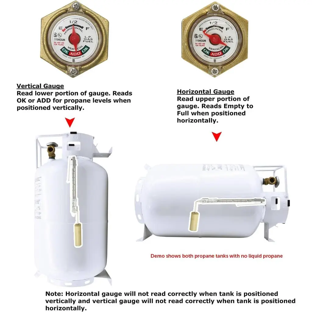 Flame King's all NEW 30lb Refillable Horizontal Propane Cylinder is perfect for fire tables, fire pits, patio heaters, barbeques, RVs, and truck campers. Never run out of propane again! This empty tank comes with a Type 1 OPD (Overflow Protection Device) valve and a Built-in accurate gauge. Features an EZ-HANDLE collar design with a built-in formed handle with no sharp edges. Offers stable bracket feet for more secure footing together with a bolt-down option. Engineered with rugged, high-grade steel welded construction, specifically designed for lightweight strength. All Flame King cylinders are X-RAY and Hydrostatic Tested, DOT APPROVED, and pre-purged for immediate filling.