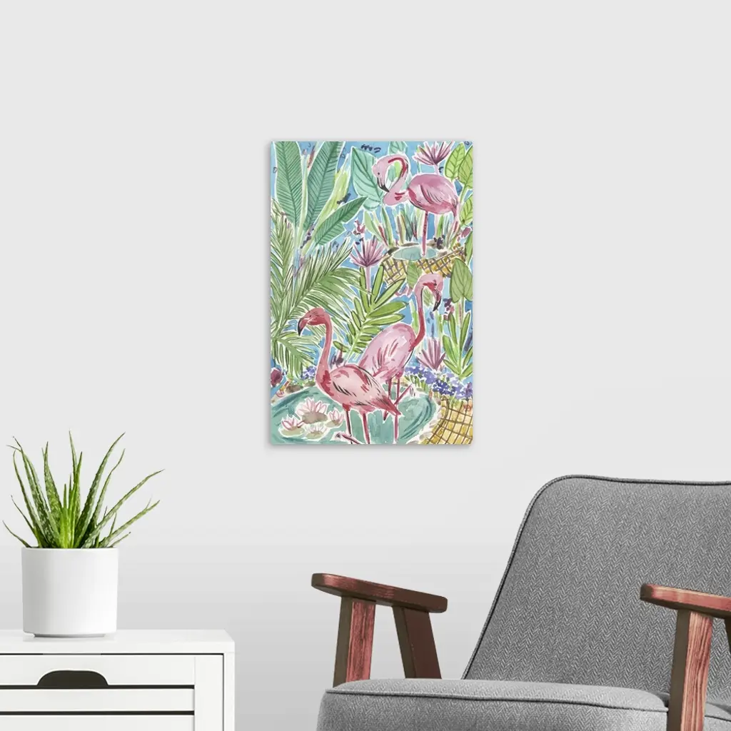 Flamingo Paradise I wall art for home and office decor. Discover canvas art prints, photos, mural, big canvas art and framed wall art in GreatBigCanvas.com's varied collections.