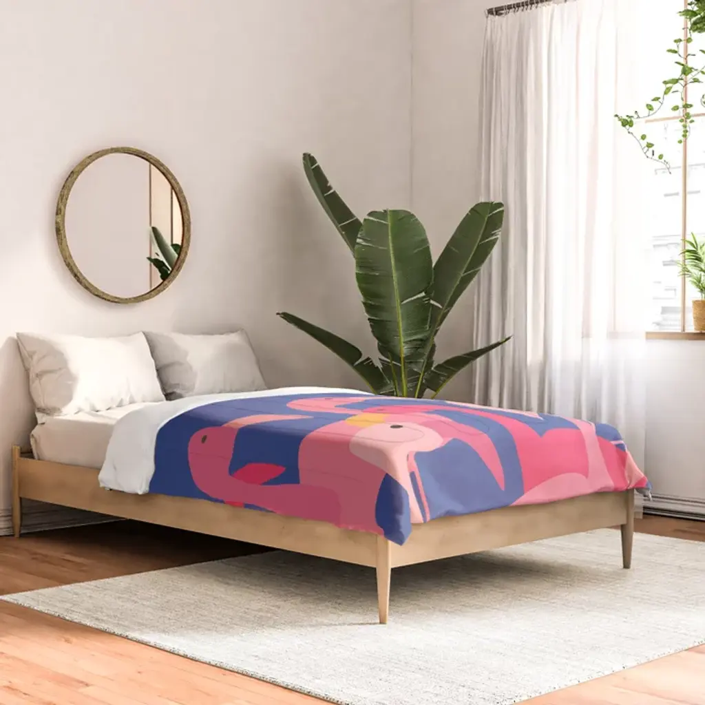 Flamingo Party / Whimsical Bird Illustration Comforter