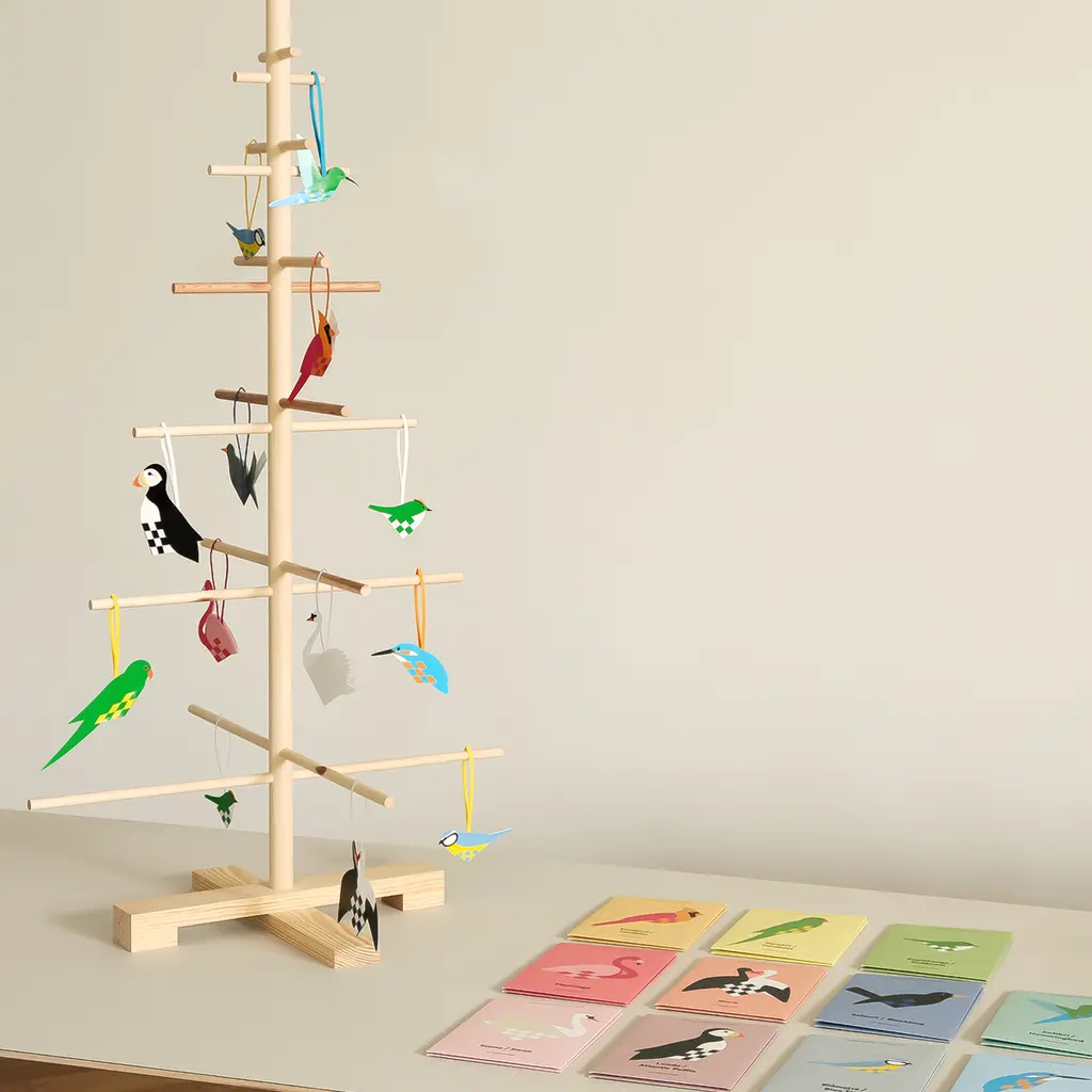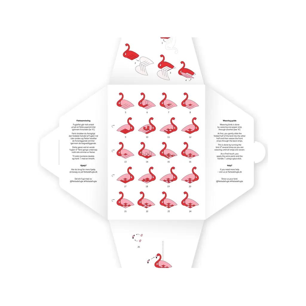 A series of woven paper birds, created by a family tradition spanning three generations. Originally created by Danish architect Henning Holmsted in 1960, the concept for the Flettede Fugle bird has evolved over time to include a huge range of species. This DIY kit includes everything you need to bring your own woven bird to life. Apart from step-by-step instructions and separate paper parts, the box also includes extra components for the finishing touches and a handle that moves the bird’s wings, making it fly. The handmade paper parts are all made from glossy paper and will vary in color and finish. Choose your favorite design(s) from a comprehensive series that comprises birds from around the world, in vibrant or neutral colors.