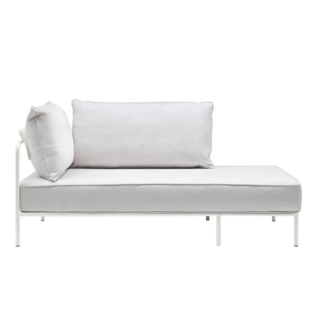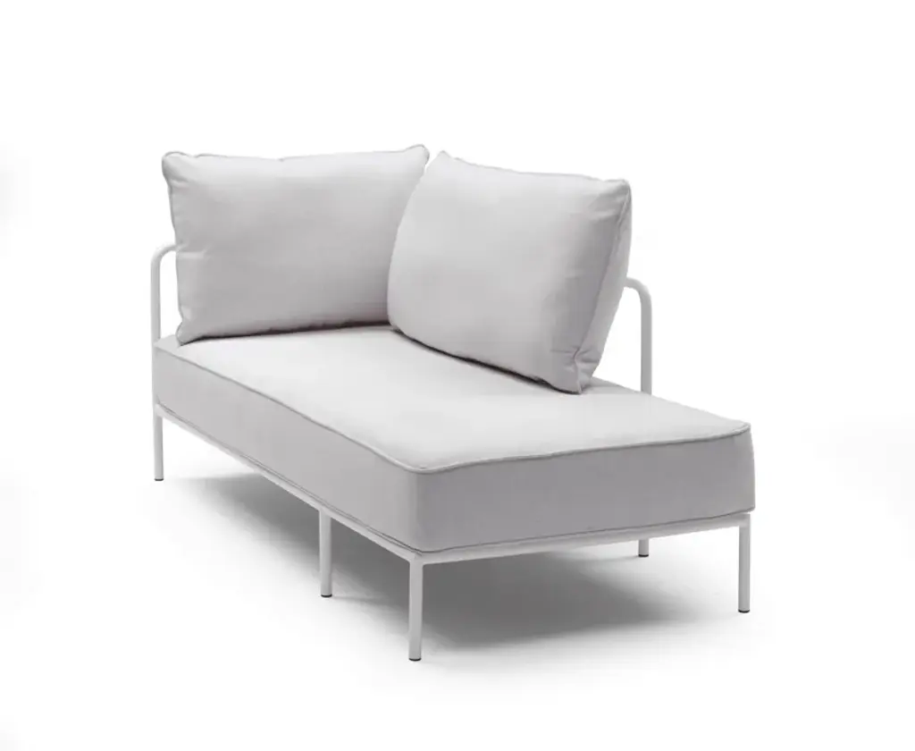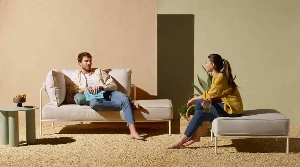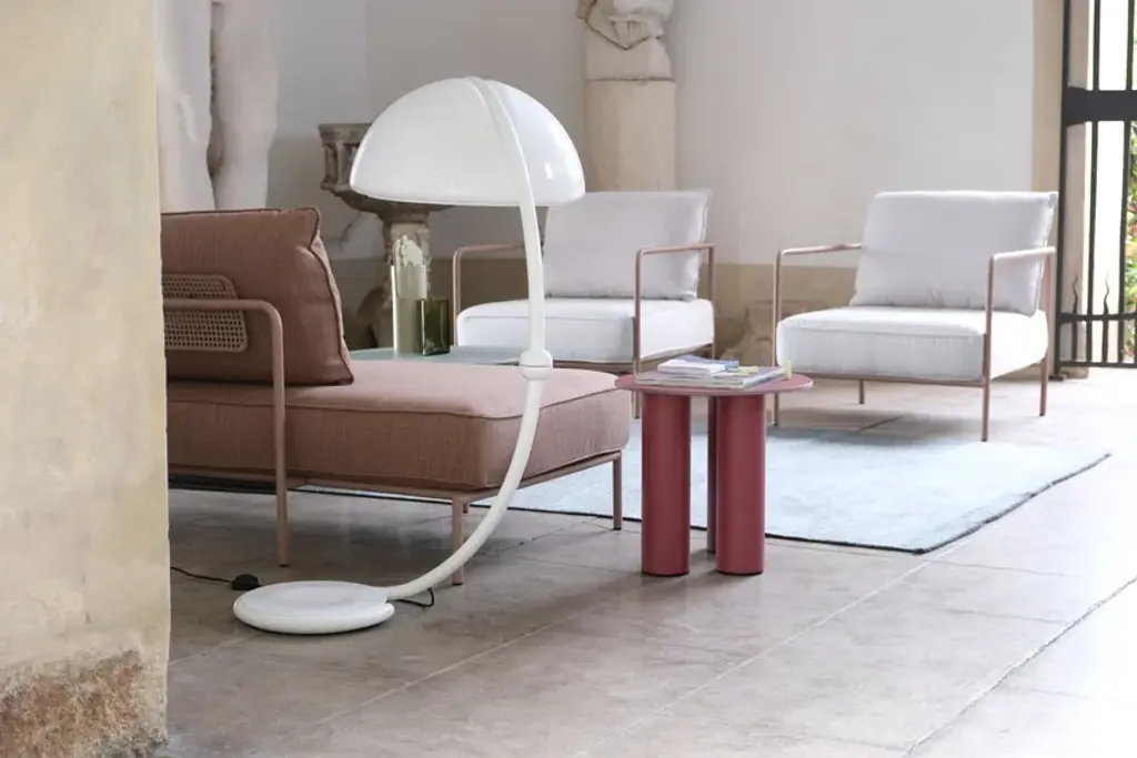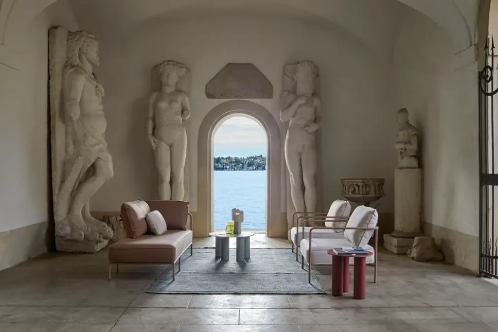 FLAP by Meneghello Paolelli, the first series of modular upholstered furniture where seating elements are combined in compositions with support surfaces, similarly shortens the gap between indoor and outdoor. To support the rear cushions, elements resembling aircraft flaps are attached to the backrest part of the main structure.The FLAP sofa designed by Meneghello Paolelli in 2023 was the first collection of modular upholstered furniture where the seating elements combine in a composition with support surfaces. In April 2024, S-CAB’s modular system is enriched with modules that complete the proposal with chaise longue elements (right and left), armchair, and pouf. Flap thus becomes a true system, suitable for spaces of different sizes, comfortable, adaptable to both residential and contract solutions.The structure, minimalist in style, has elements fixed in the backrest that recall in shape the flaps of airplanes. This creates a movable backrest that rests on the tubular structure and that can rotate on the axis about 15 degrees, allowing the rear support cushion to have different inclinations to achieve the best possible comfort level.The frame, with the support of the flaps, seems to wrap around the line of cushions that define the perimeter of the upholstery, generating a continuous contrast between the softness and ‘fullness’ of the padding and the lightness and ‘emptiness’ of the structure that envelops it.The system consists of eight elements that allow you to obtain many compositions.