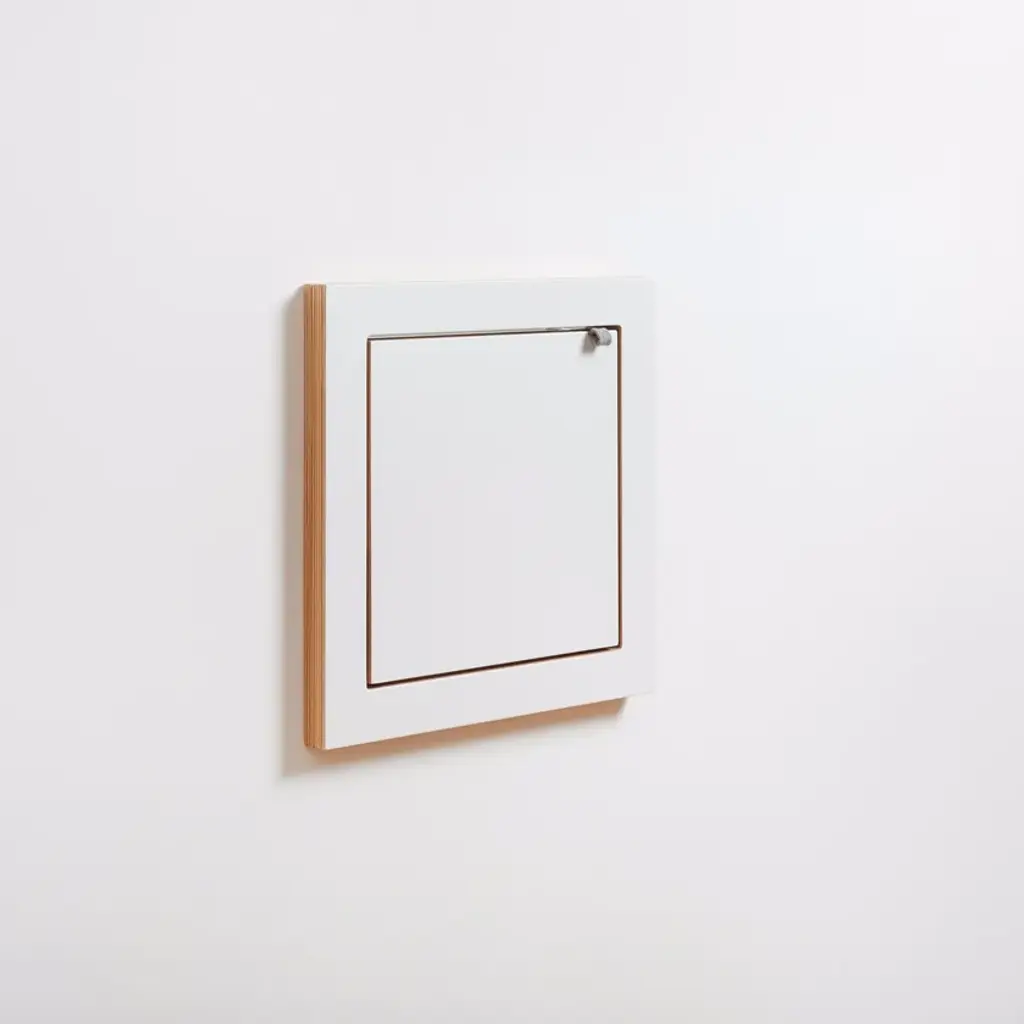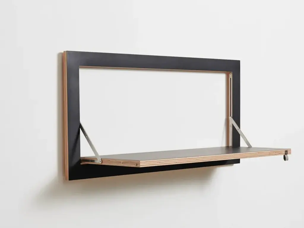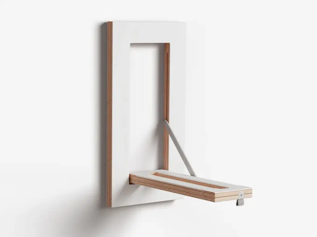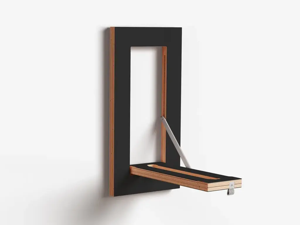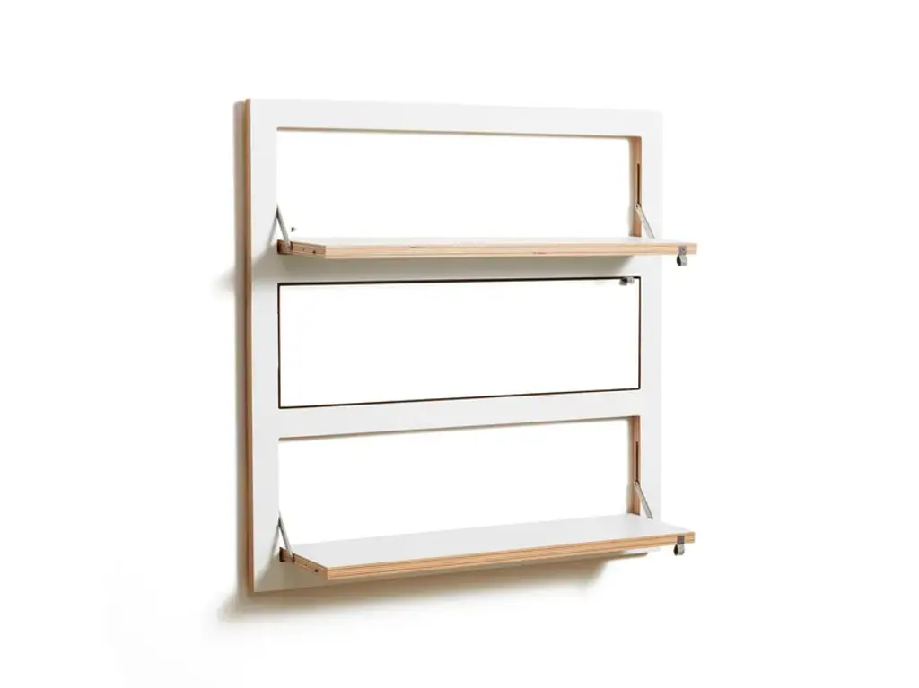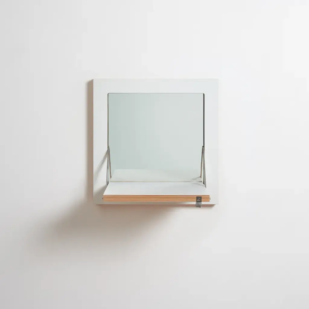 Fläpps Vanity mirror - Inspired by the iconic James Dean leaning against the bar, the Fläpps leaning shelf is the perfect solution for any cool wall. Assembled and disassembled faster than John Wayne can draw his gun. And folded it is as space saving as Kate Moss.The whole Fläpps-Collection is printable and combinable with each other. That gives anyone the freedom to individually compose their wall-setup, and change it whenever they are undecided. A wall mounting mechanism, especially designed for this purpose, makes it possible. It consists of two wooden slats that can effortlessly be connected to the wall by using the provided stencil. After that Fläpps can be mounted safely and stable. In this way no abrasion occurs to the product while mounting and demounting so nothing stands in the way for undecided people. No matter how often they like to move or reposition their product. AMBIVALENZ - STAY UNDECIDED!Material: birch plywood, stainless steelDimensions: Folded 40 x 40 x 2 cm + 1 cm Wall Mount, recess for touch pads lying 24 x 19 x 1 cm / standing 24/27 x 1 x 1cmFinish: Lacquer