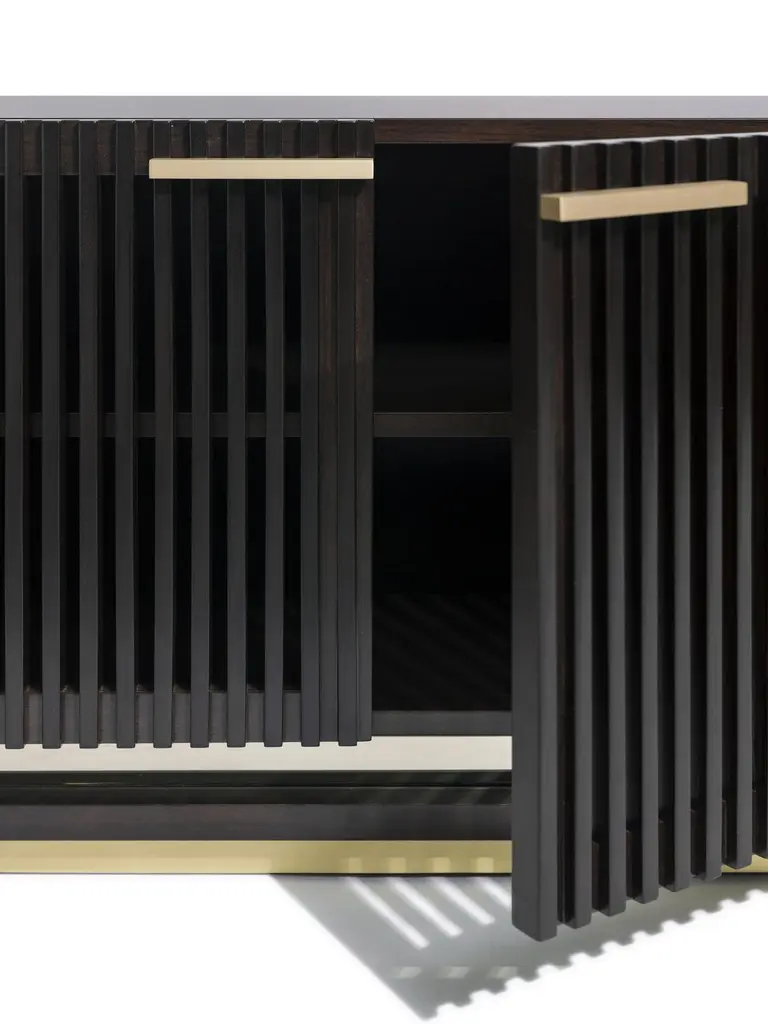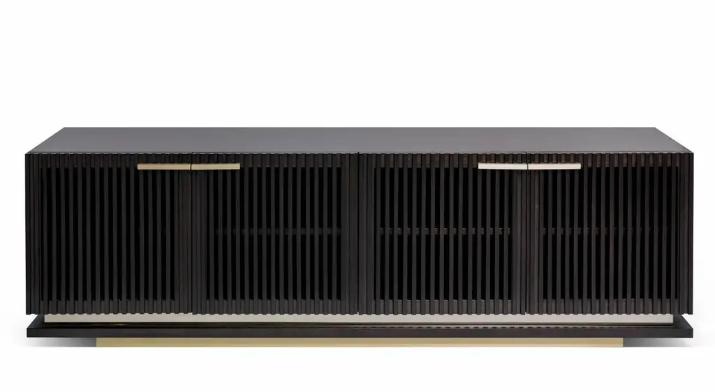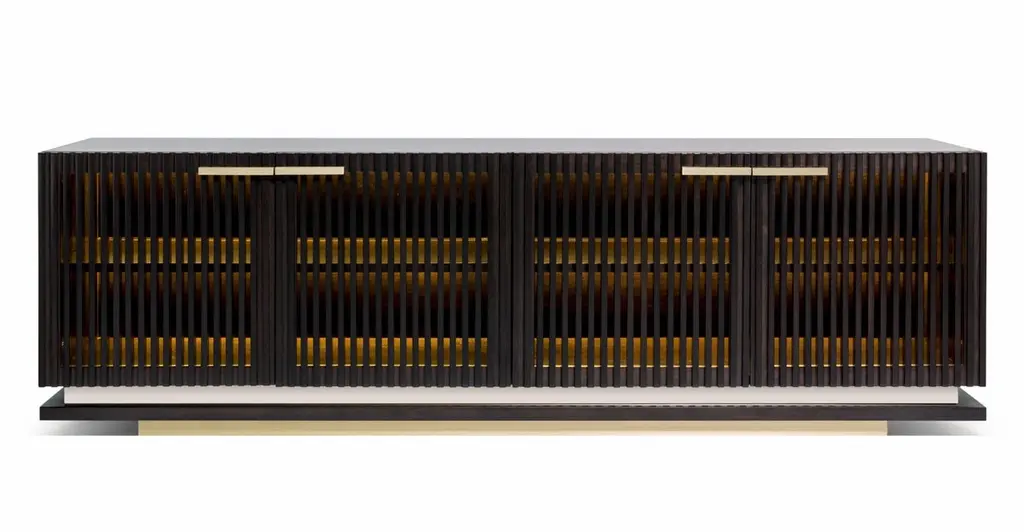 Flare TV Unit by DUISTTDimensions: W 200 x D 50 x H 61 cmMaterials: Darkened walnut, bronze mirror and Brass/Bronze, LED'S on the insideThe FLARE TV unit is here to cut the clutter and get things organized with style and elegance. This luxury furniture design combines high-end materials in wood and metal. Capable of changing the entire room, suitable for quality living rooms it will enhance the decor of your house. DUISTT is a Portuguese high-end furniture brand.Born in Porto in 2014, the company breathes history and modernity. We blend ancient knowledge and techniques with contemporary aesthetics.DUISTT designs refined and sophisticated pieces aiming to provide major comfort and quality. Handmade pieces crafted with art that are absolutely unique and can last generations.We invite you to discover our elegant and timeless designs and we hope it brings you pleasure.